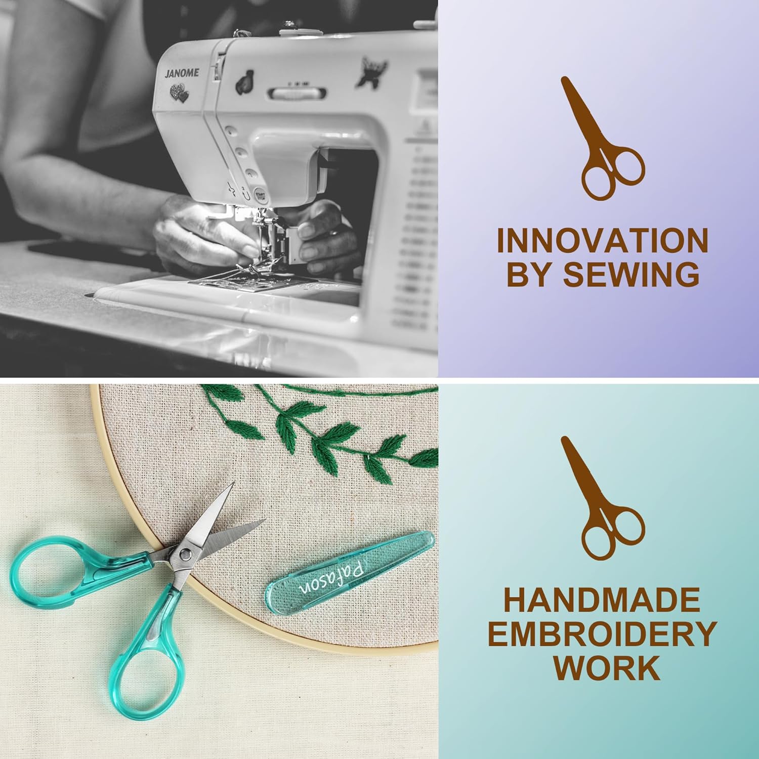PAFASON Sharpest & Precise Stainless Steel Curved Straight Thread Yarn Fabric Cutting Scissor with Safety Cap & TSA Complied Ideal for Embroidery Quilting Sewing Knitting Crafting Cross Stitch Crochet
