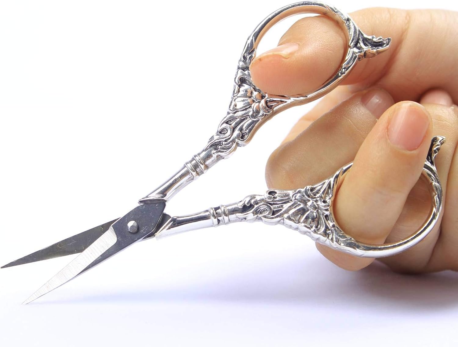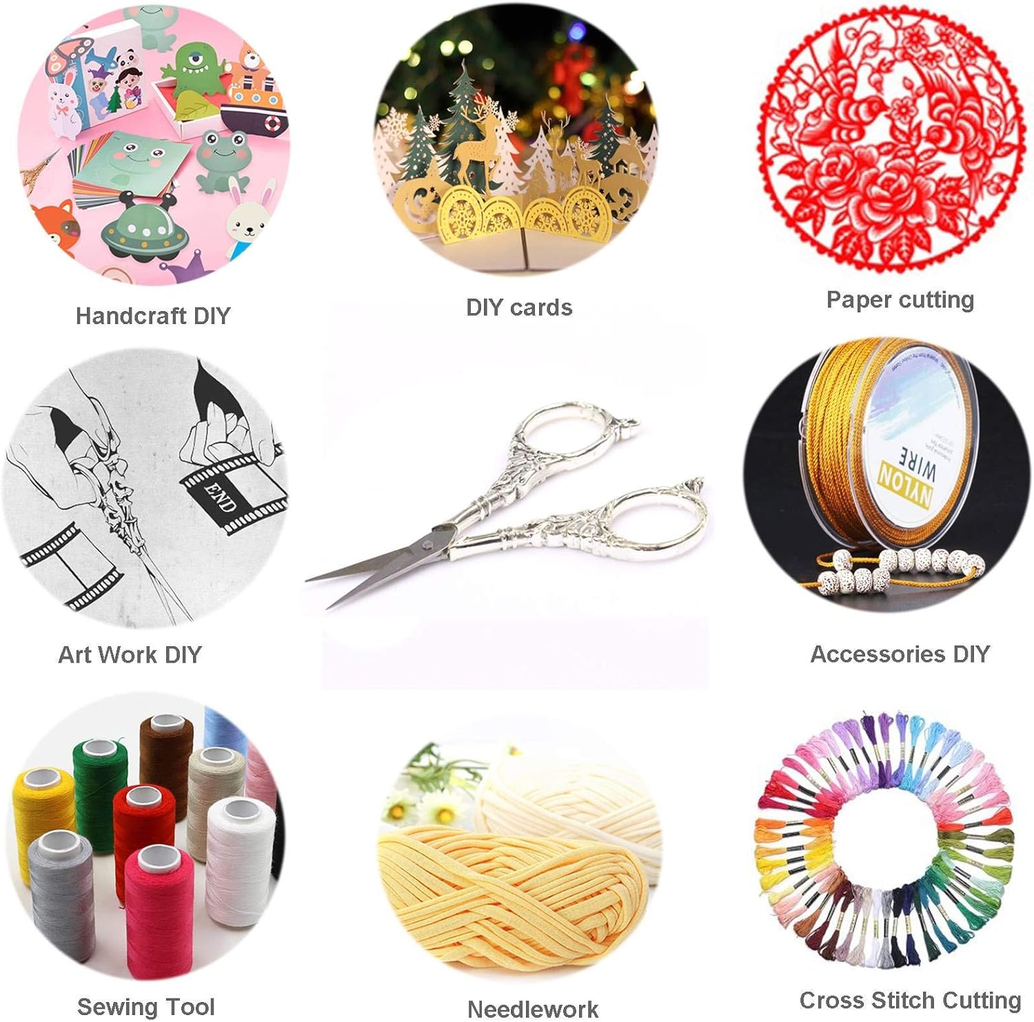 BIHRTC Vintage European Style Scissors Stainless Steel for Cross Stitch Cutting Embroidery Sewing Handcraft Craft Art Work DIY Tool(Silver)