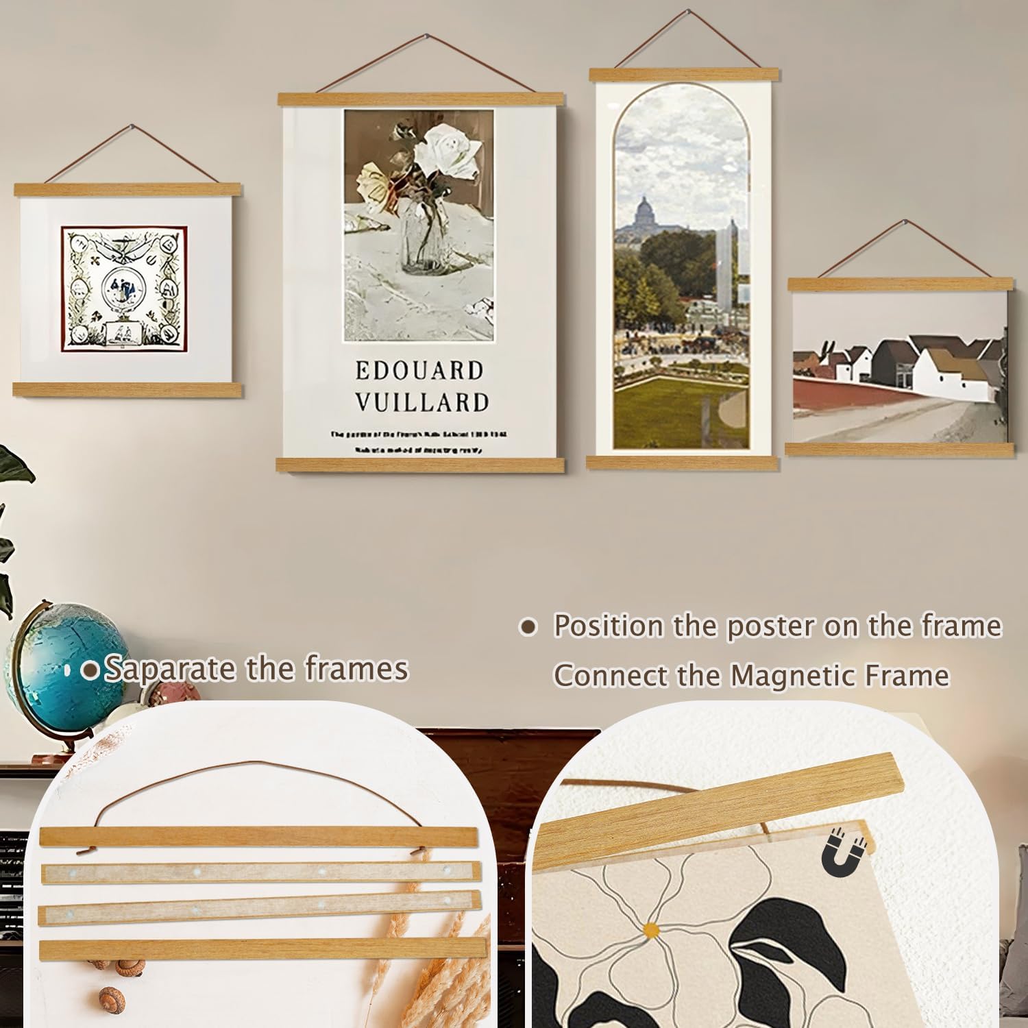 - Magnetic poster hanging kit with strong magnet, keeping your poster, picture, canvas artwork from falling off