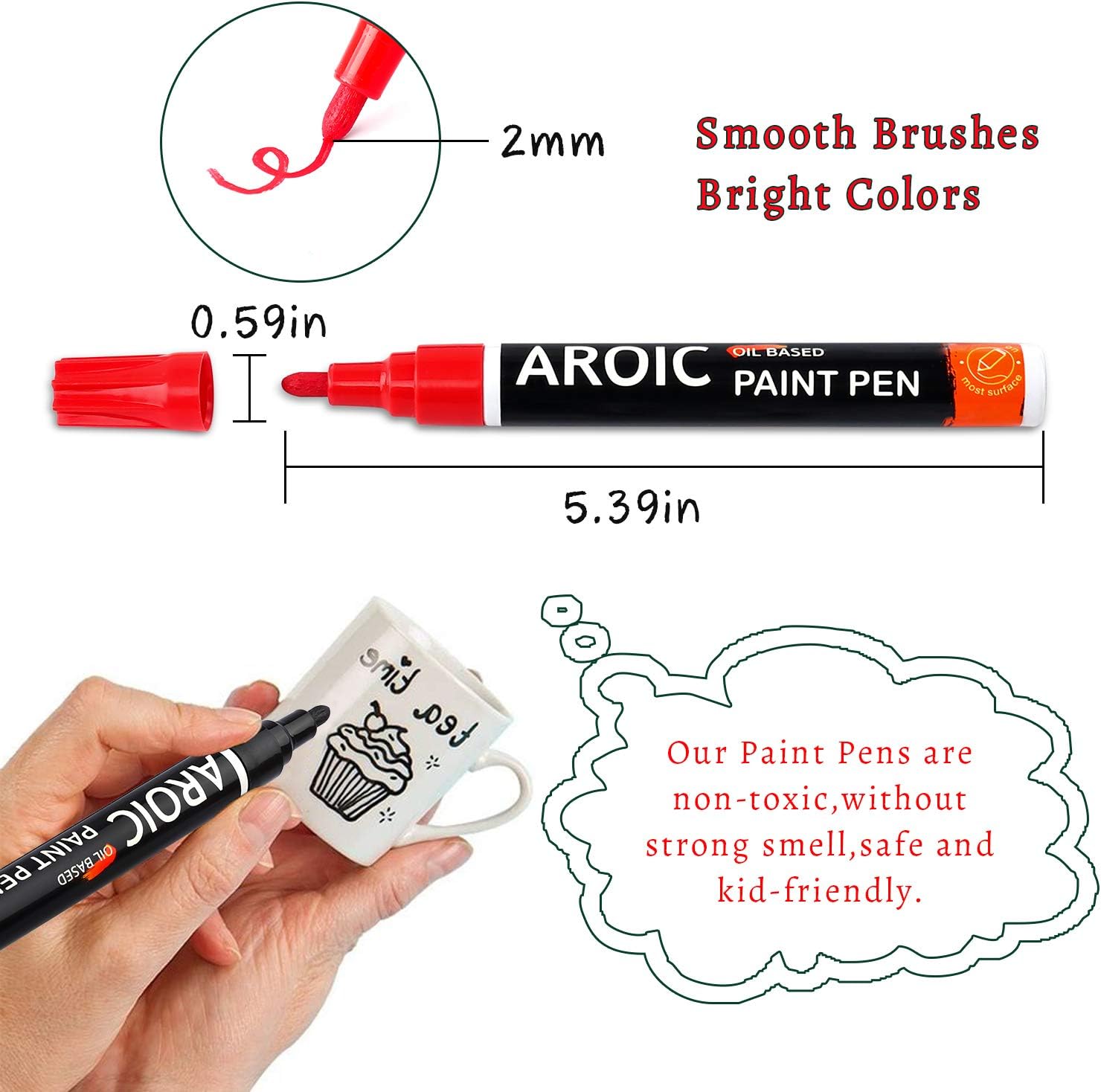 AROIC Paint Pens Paint Markers, 16 colors Oil-Based Waterproof Painting Marker Pen Set On Rock, Wood, Fabric, Metal, Plastic, Glass, Canvas, Mugs, Waterproof, DIY Craft and More