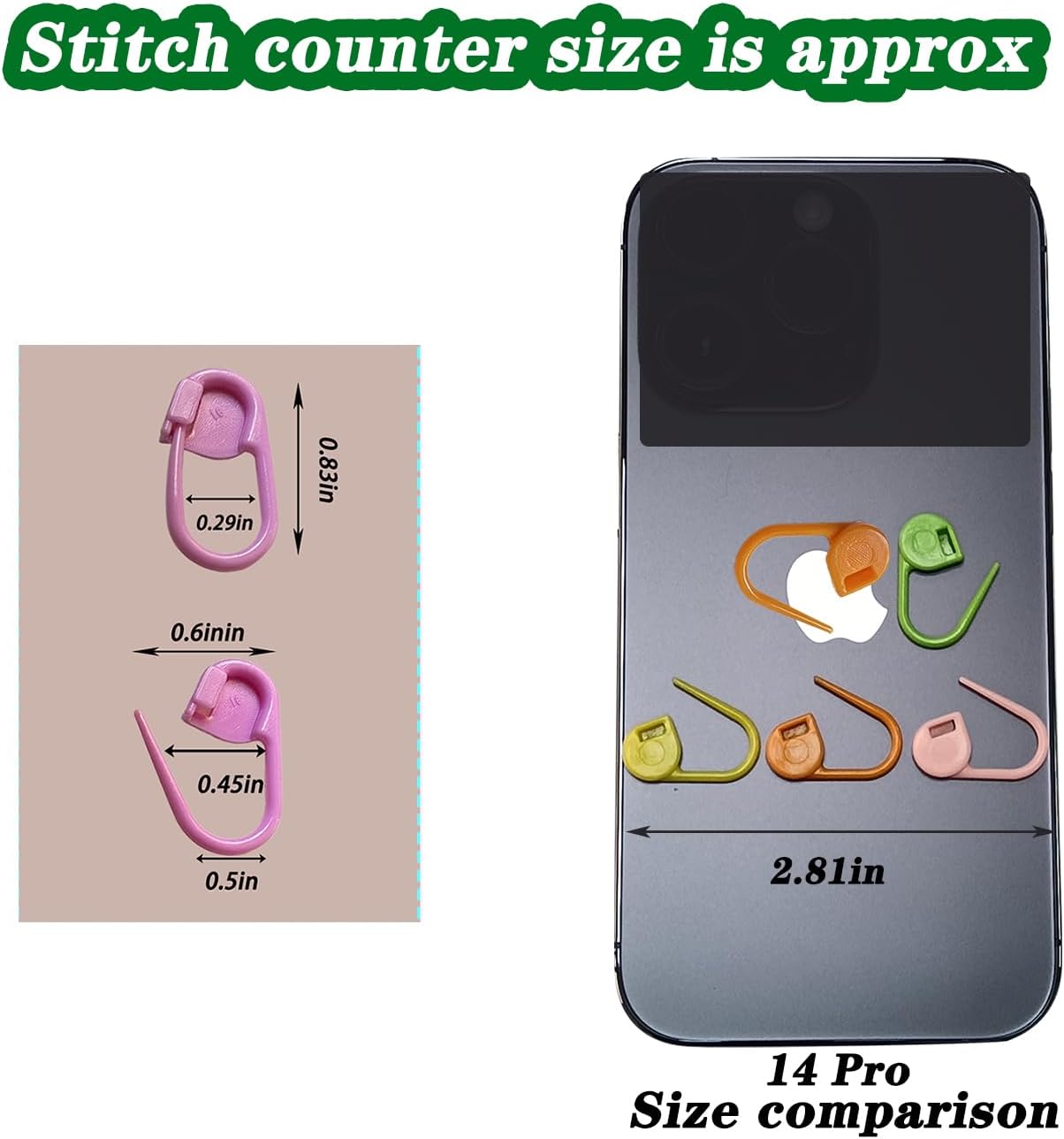 - MATERIAL:made of good plastic, designed to hook into the knitted or crocheted stitch so it will not slip out