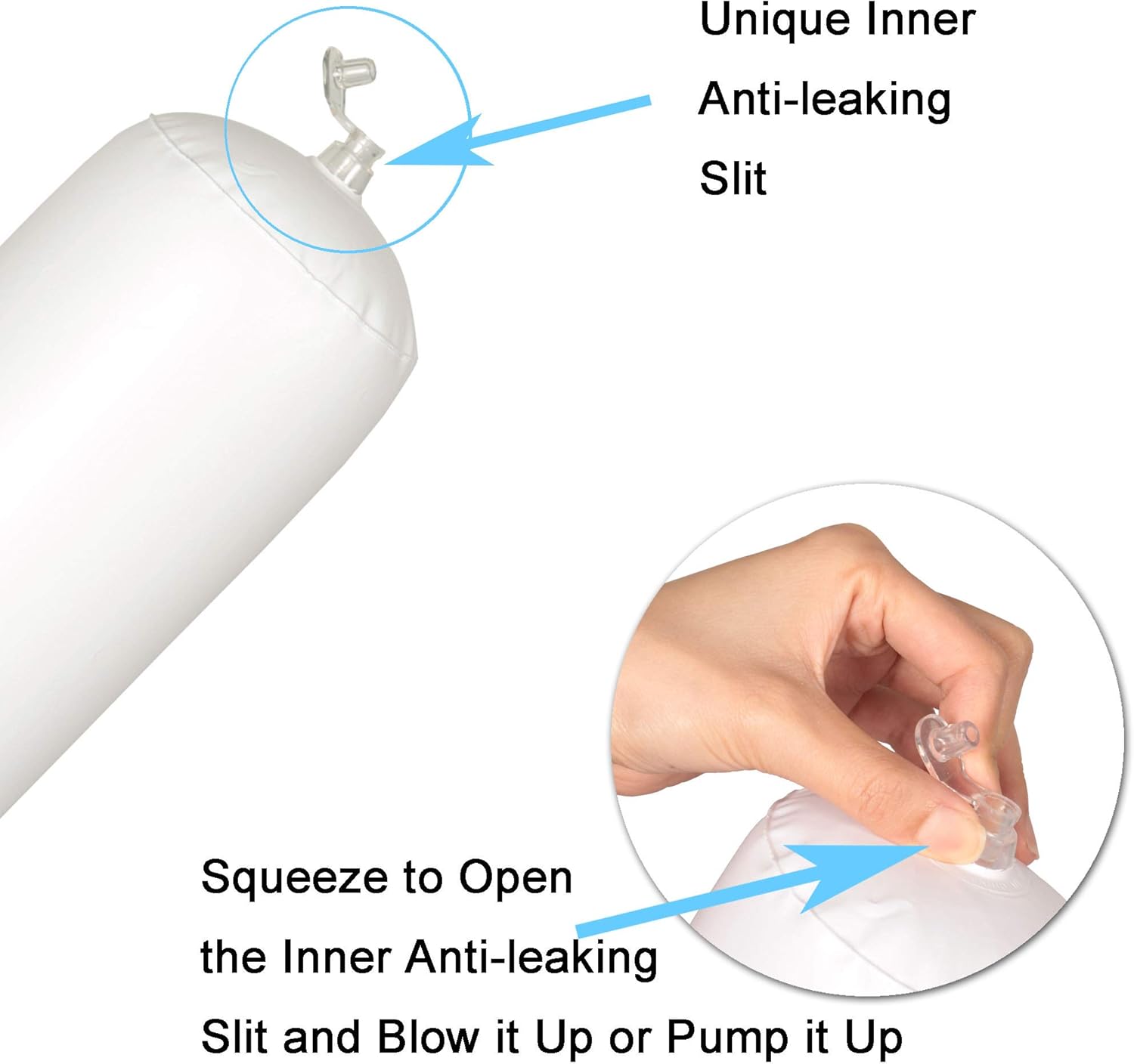 - Unique Anti-leaking Design - Our tube is specially designed with an anti-leaking slit which allows it to last longer than other tubes in the market when inflated. Please squeeze the valve with your fingers to open the slit and blow in air to inflate the tube.