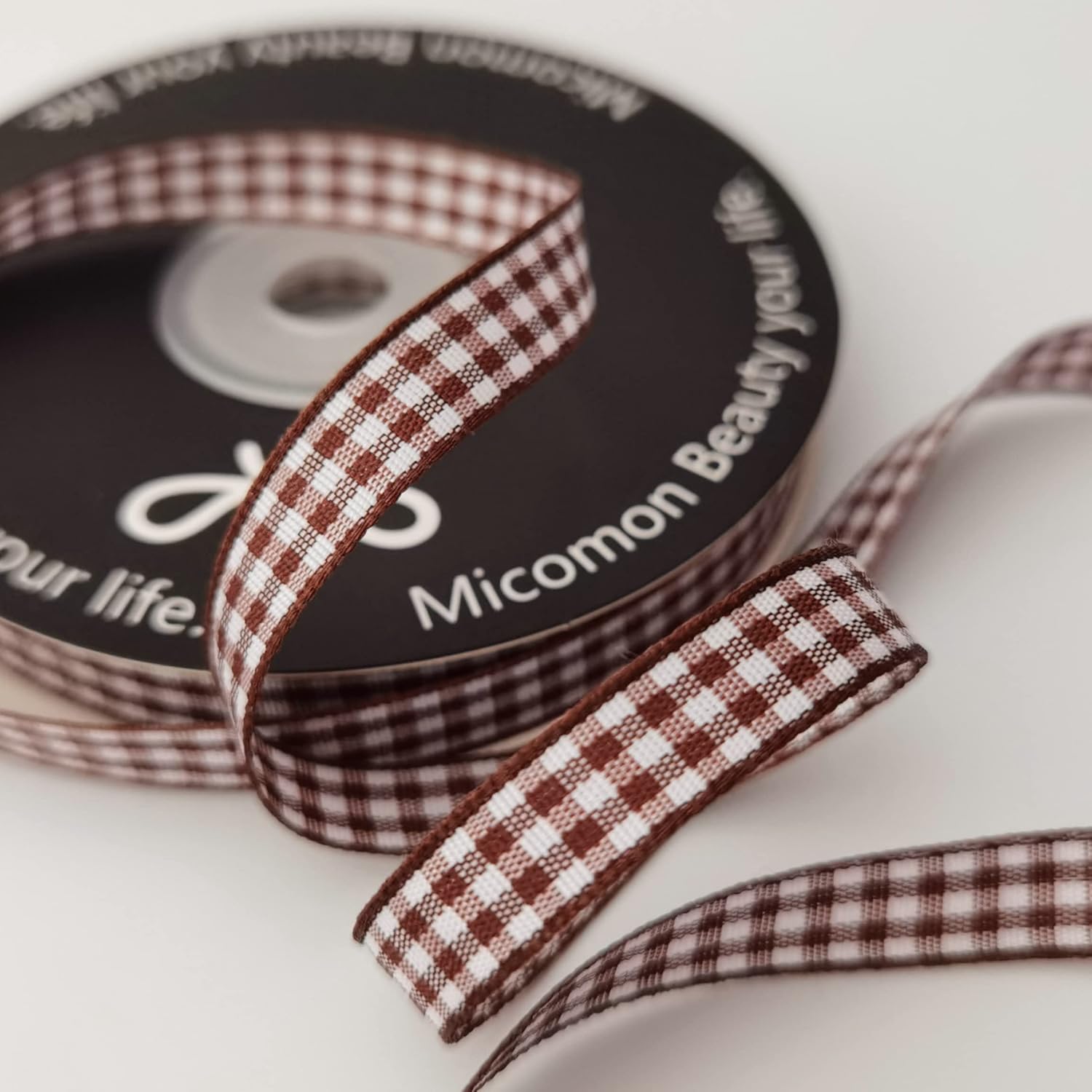 Brown Gingham Ribbon 25 Yards Christmas Ribbon for Crafts Plaid Checked Ribbon 100% Polyester (3/8", Brown)