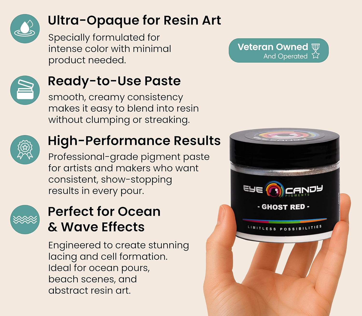 Eye Candy Pigments Premium Ghost Mica Powder - Ghost Red (50gr) - for Epoxy, Resin, Soap, Paint, Woodworking, Acrylic Pouring, Bath Bombs, Fishing Lures - DIY Arts and Crafts Additive