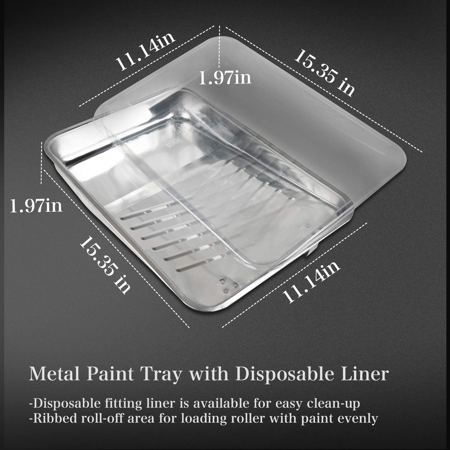 - Complete Painting Kit: This kit includes a Roller Tray with a disposable Liner, 2 Roller Frames (9"+4"), 4 Roller Covers (9"+4"), and a 2" Angle Brush. It provides all the essential tools you need to tackle various painting project applications.