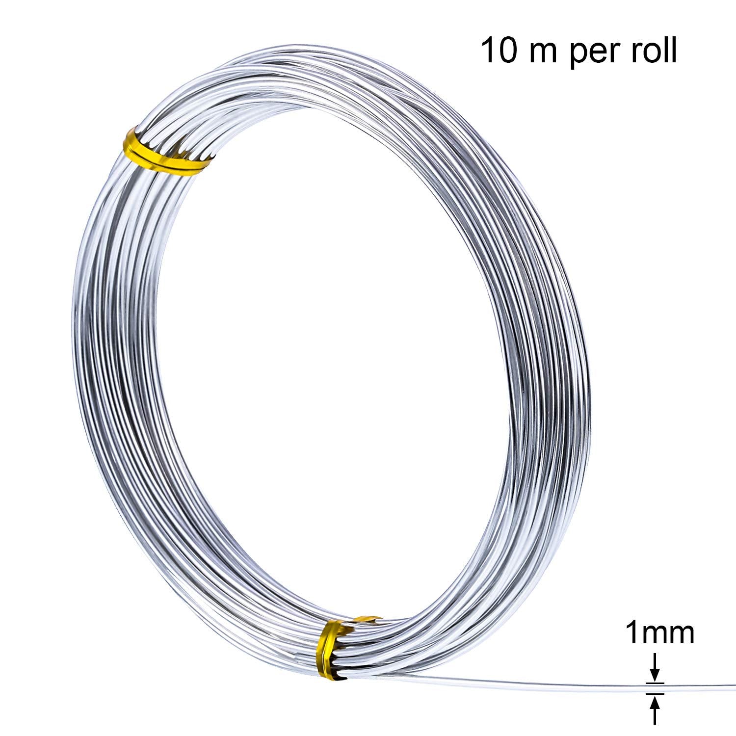 TecUnite Aluminum Craft Wire for Sculpting Armature Bendable Craft Wire for DIY Jewelry Making (1 Roll,Silver,10 M x 1 mm)