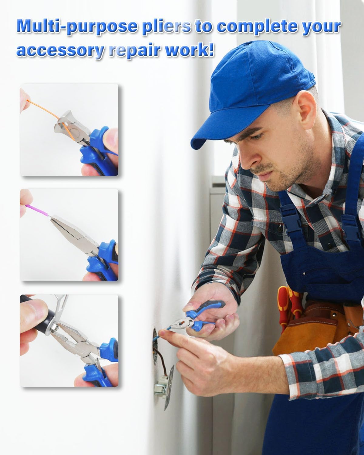 - More Comfortable Mini Pliers Set-- The soft and ergonomic blue silicone grip handle provides extra comfort experience, and double leaf spring creates a self-opening, allows you to cut and bend more easily, reducing hand fatigue and get more efficiency during jewelry making projects.