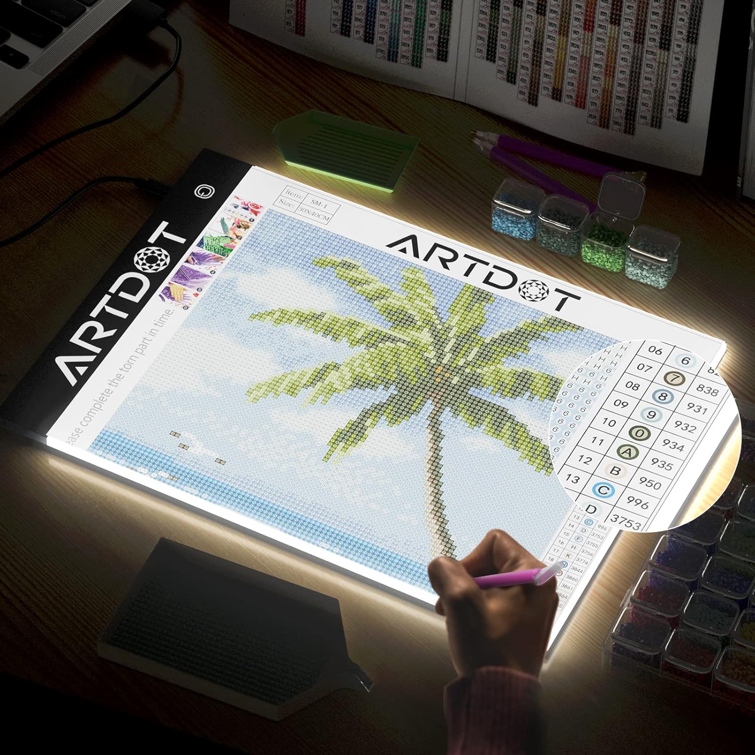 ARTDOT A4 LED Light Pad for Diamond Painting Kits for Adults, USB Powered Adjustable Brightness Diamond Art Light Board with Accessories