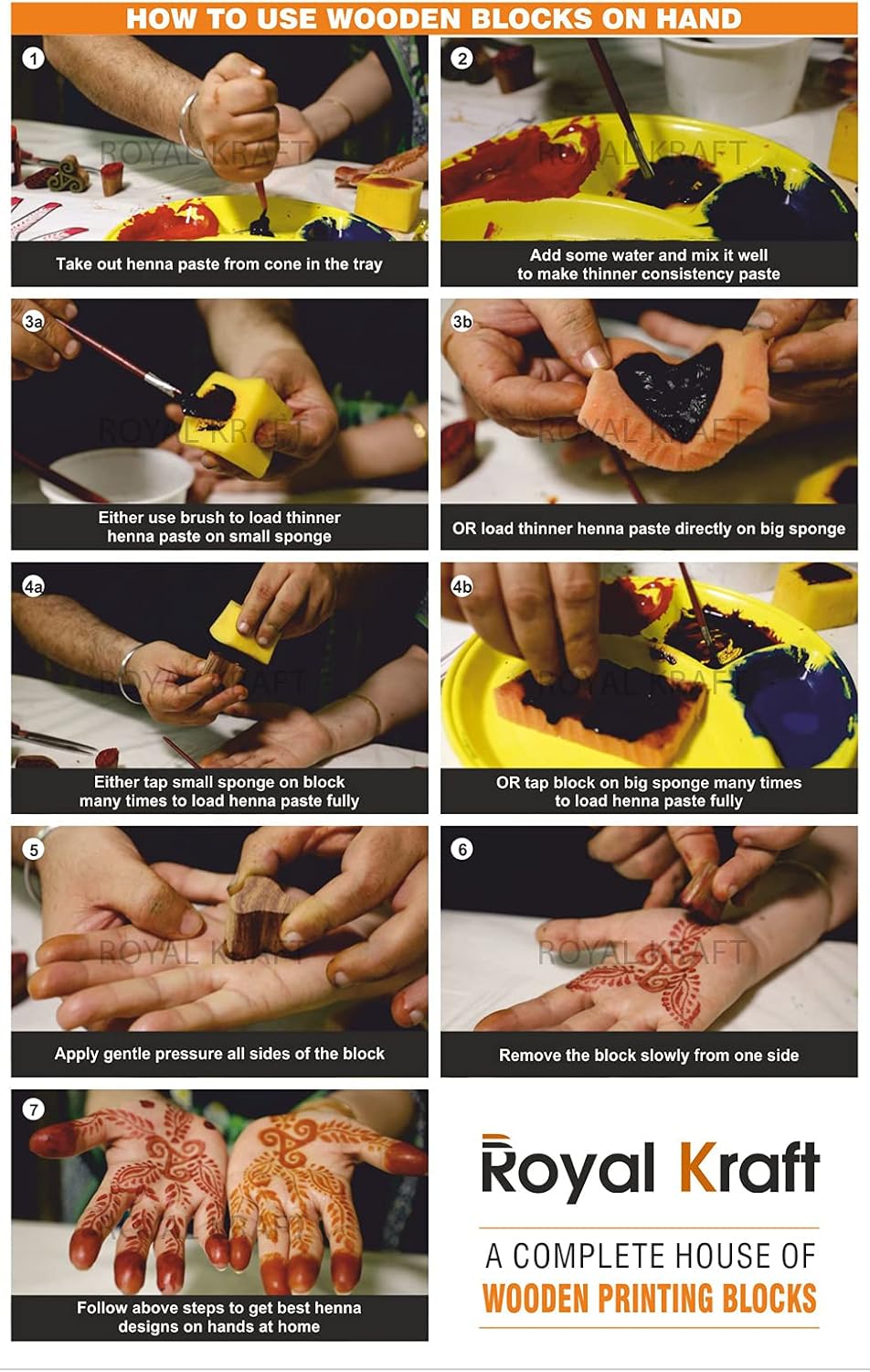Royal Kraft Wooden Stamps for Block Printing on Saree Border, Textile, Clay, Pottery, Tattoo (Set of 10) MXtag0003