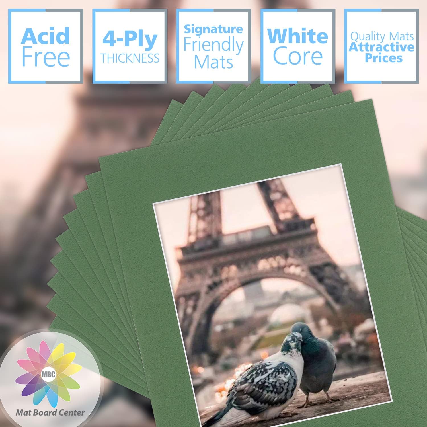 - Pack of 10 Acid-free Precut China Basque Green Color Mats