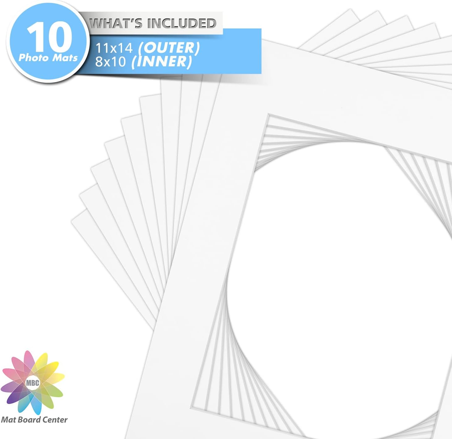 Mat Board Center, Pack of 10, 11x14 for 8x10 Off White Color Mats - Bevel Cut, Acid Free, 4-ply Thickness, White Core - for Pictures, Photos, Framing
