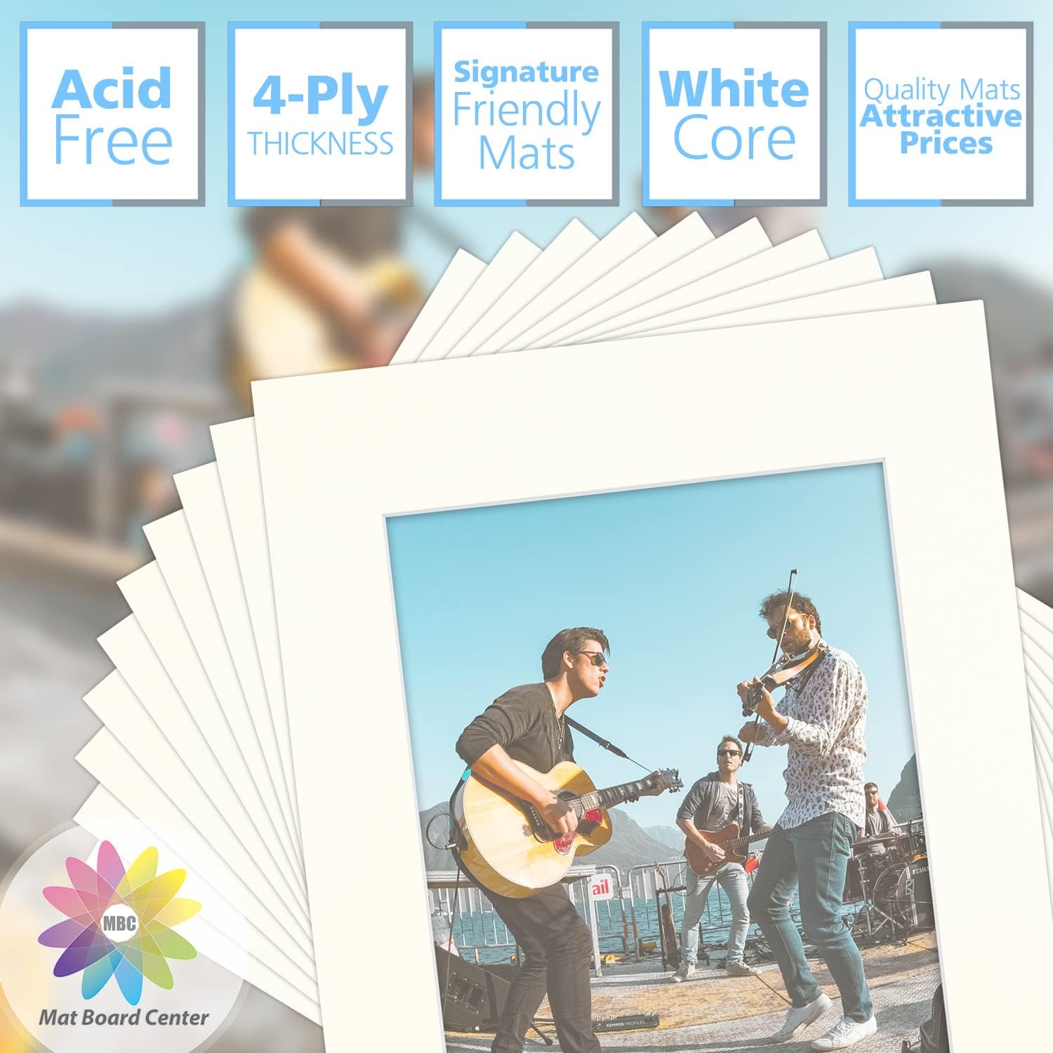 Mat Board Center, Pack of 10, 11x14 for 8x10 Ivory Turret Color Mats - Bevel Cut, Acid Free, 4-ply Thickness, White Core - for Pictures, Photos, Framing