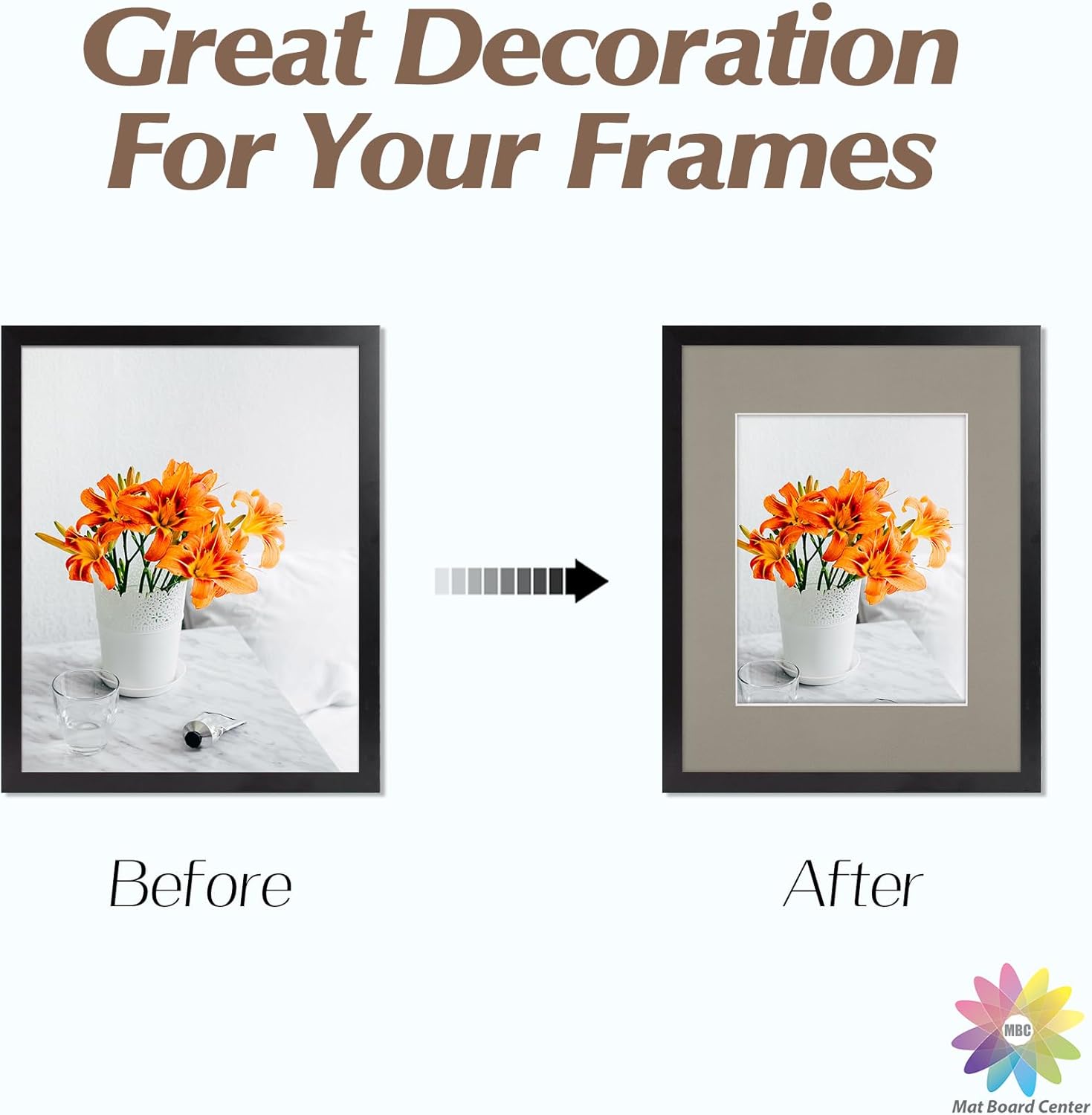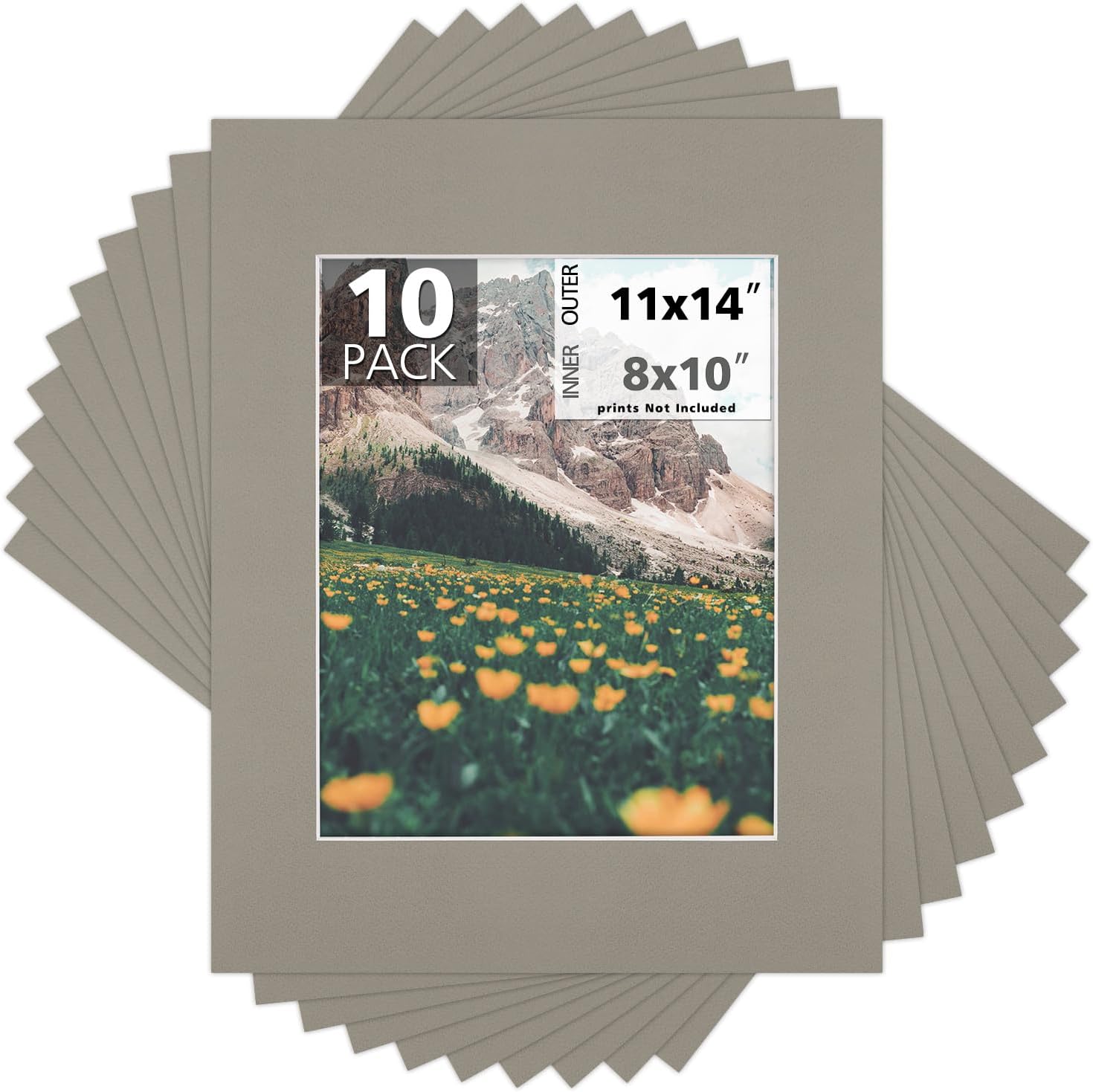 Mat Board Center, Pack of 10, 11x14 for 8x10 Middle Gray Color Mats - Bevel Cut, Acid Free, 4-ply Thickness, White Core - for Pictures, Photos, Framing