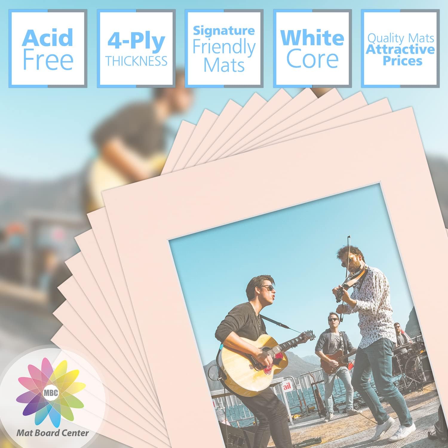 Mat Board Center, Pack of 10, 11x14 for 8x10 Pink Color Mats - Bevel Cut, Acid Free, 4-ply Thickness, White Core - for Pictures, Photos, Framing