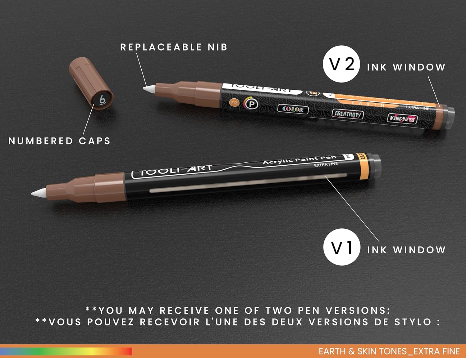 - ✔️BEAUTIFUL NATURAL COLORS! – You get 36 paint pen acrylic markers consisting of an array of beautiful SKIN and EARTH colors in extra fine tip. This set was specifically designed for painting faces, people, animals, nature, etc. These colors are a must have for artists and hobbyists alike and will surely inspire you to make your best art! This set gives you a variety of flesh tones, warm to cool earth colors, browns and beiges, and shades of gray that you don’t find in typical paint pen sets.