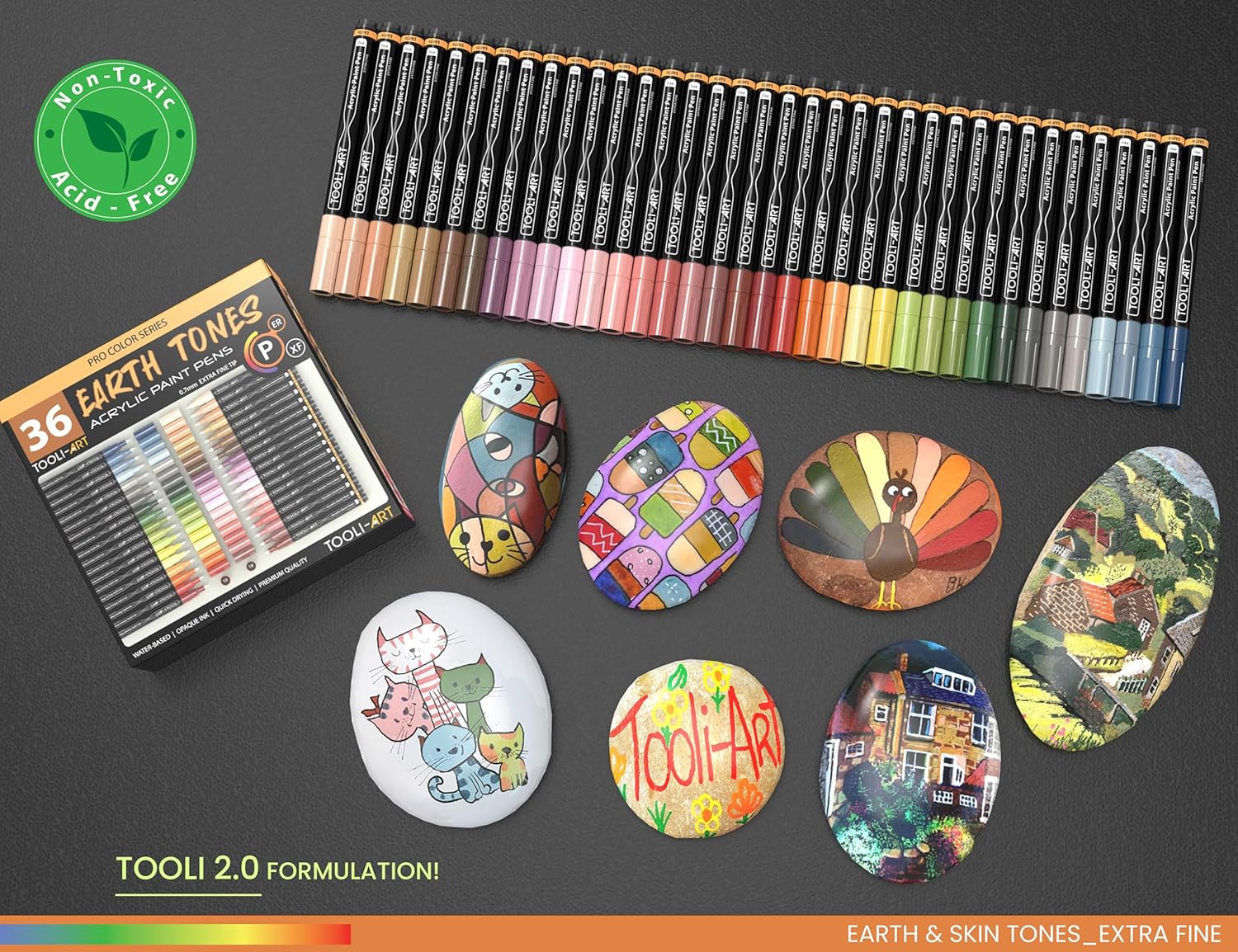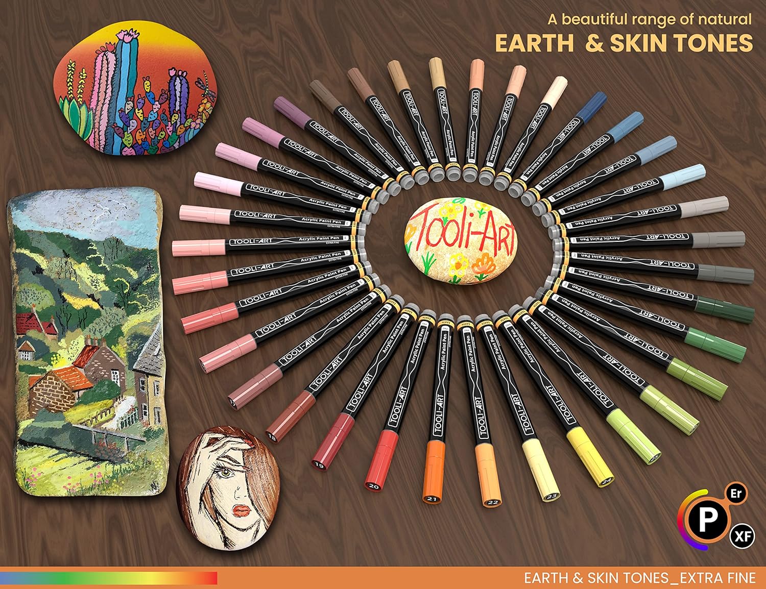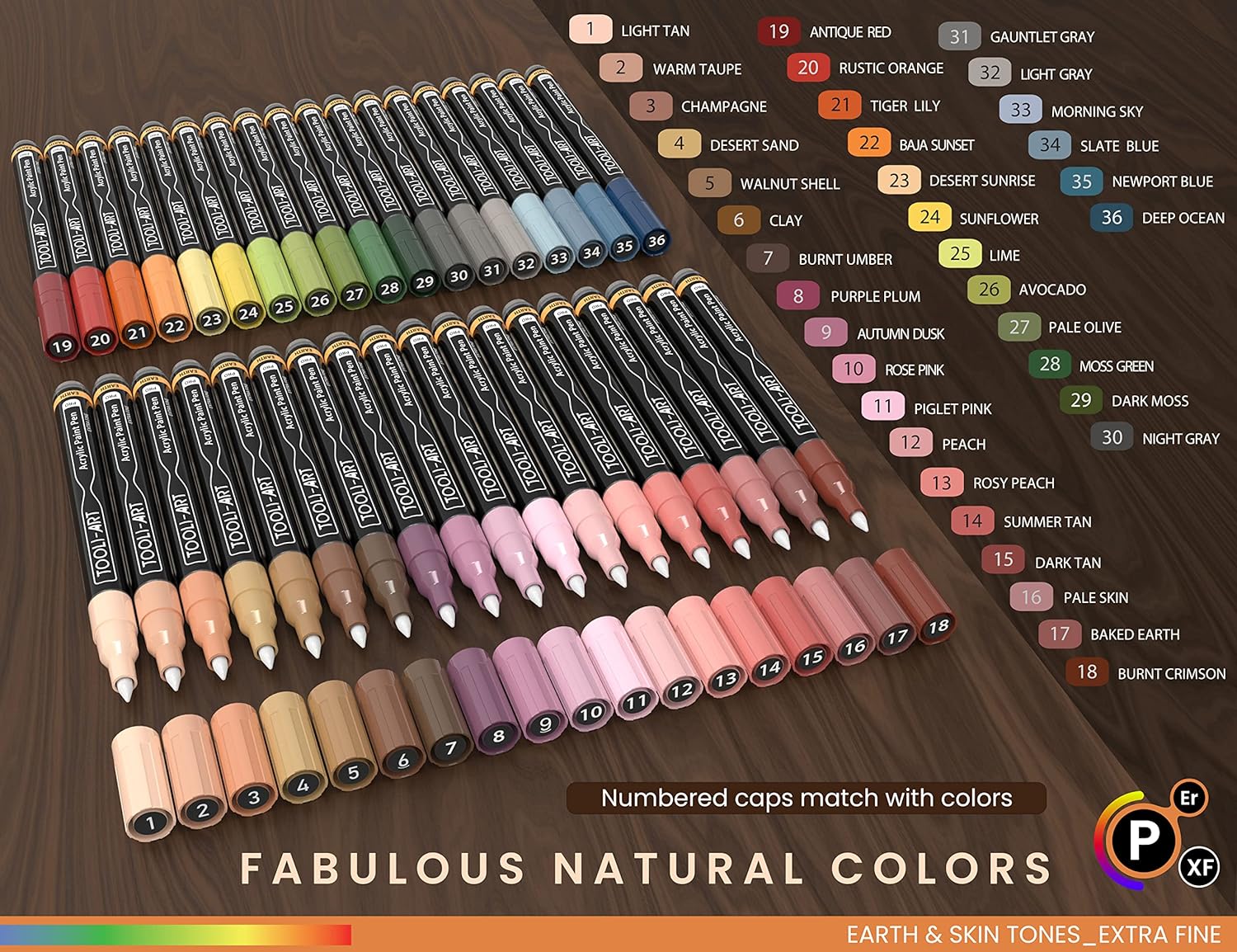 36 Acrylic Paint Pens Skin and Natural Earth Tone Marker Set For Rock Painting, Canvas, Mugs, Glass, Plastic, Wood, Metal, Fabric, Scrapbooking, Most Surfaces. Quick Drying Waterbased (EXTRA FINE)