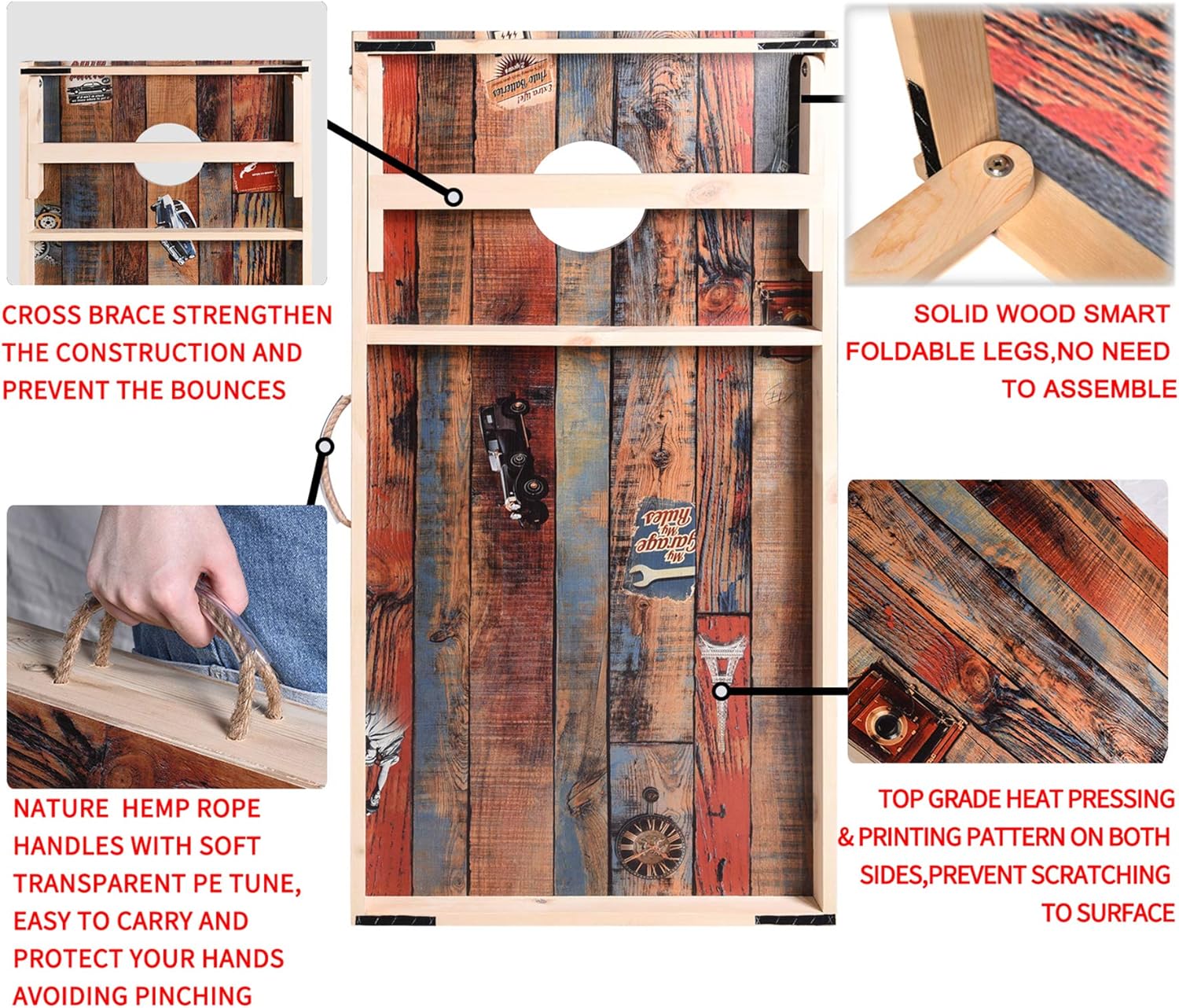 Solid Wood Vintage Cornhole Game Set, Two 4'x2'Cornhole Boards, 8 Cornhole Bags for Indoor and Outdoor Toss Games Competitions, Tournaments