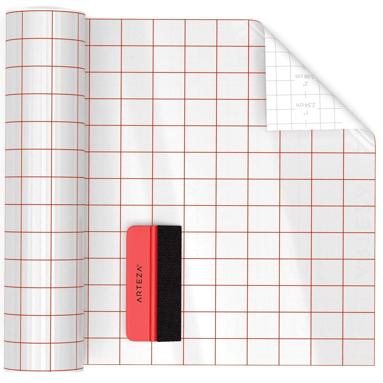 ARTEZA Ultra Clear Transfer Tape Paper with Grid & Squeegee, 12 Inch Wide x 25 Foot Long Roll, for Alignment & Transfer of Adhesive Vinyl for Decals, Signs, Walls, Windows & Smooth Surfaces