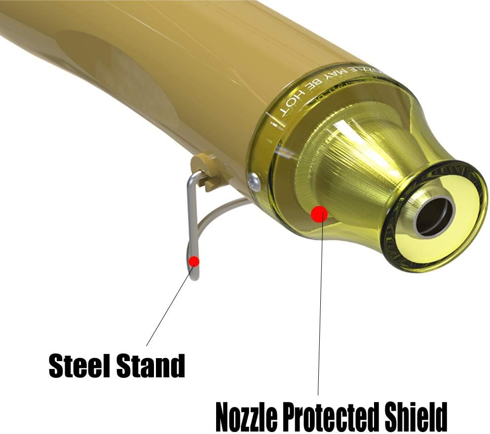 - ★ Suitable for:This excellent compact heat gun can be used for heating shrinkable film, embossed powder,rubber stamp.Built-in stand for self-support and table top use