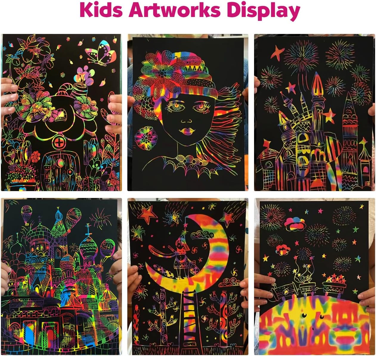 - Creative Boys & Girls Holiday Gifts - The creativity of this black scratch paper and the beautiful packaging makes it a great mother day crafts for kids bulk.Ideal gifts for kids birthday, class activity and Valentine day, Easter Basket Essentials, Halloween, Children's day, Thanksgiving, Christmas and Stocking Stuffers.