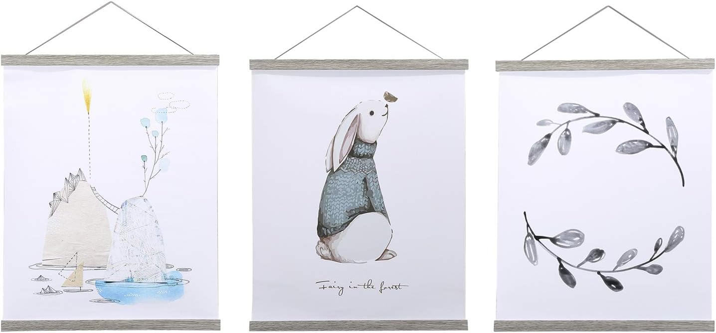 Ywlake Magnetic Poster Hanger, 24x36 24x18 24x32 Poster Frame Wood Wooden Magnet Print Posters Dowel Scroll Hanger Hangers Hanging Kit for Walls Map Canvas Artwork (Grey, 24")