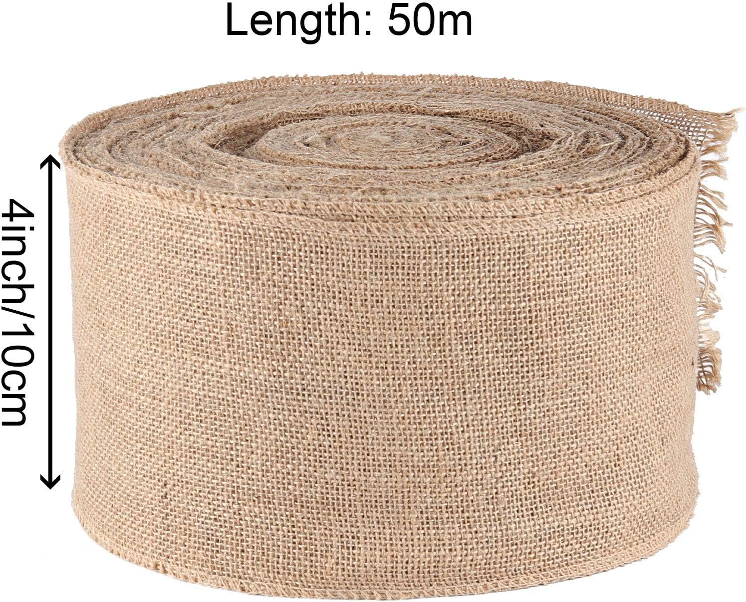 - IDEAL SIZE - each roll of burlap fabric ribbon is 4 inch/100mm wide x 54 yards/50m long. Common width perfect for direct uses. Easy to cut any length as needed.
