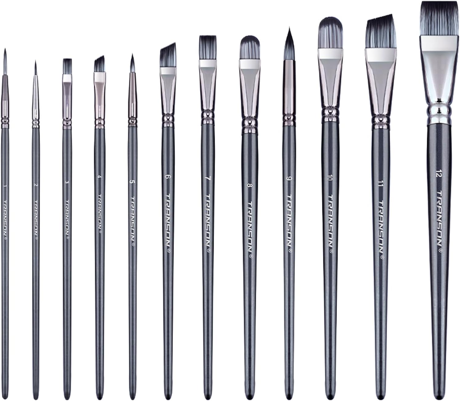 Transon Artist Paint Brush Set of 12 for Watercolor Acrylic Gouache Oil and Tempera Painting