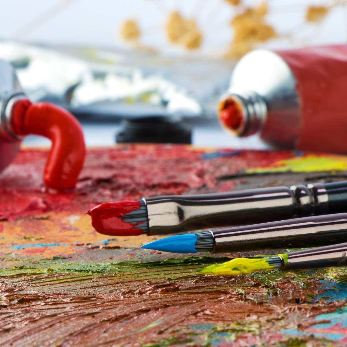 - Versatile paint brushes - these brushes are suitable for different media such as watercolors, acrylics, gouaches, oil, tempera, etc.
