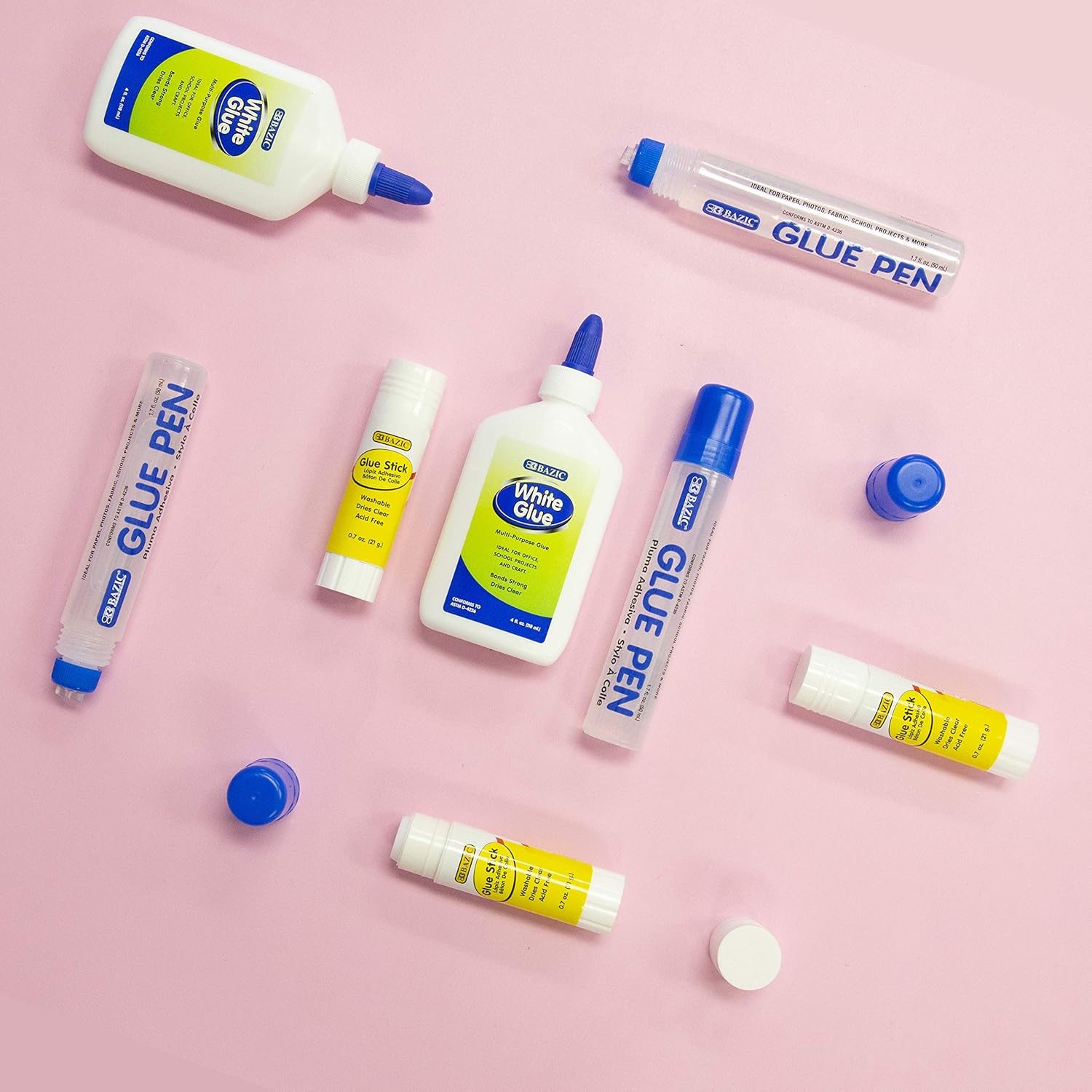 BAZIC White Glue 4oz., Clear Glue 1.7oz., Glue Stick 0.7oz., Washable Liquid Glue Pen, Multi-Purpose, for School Home Office (3/Pack), 24-Pack