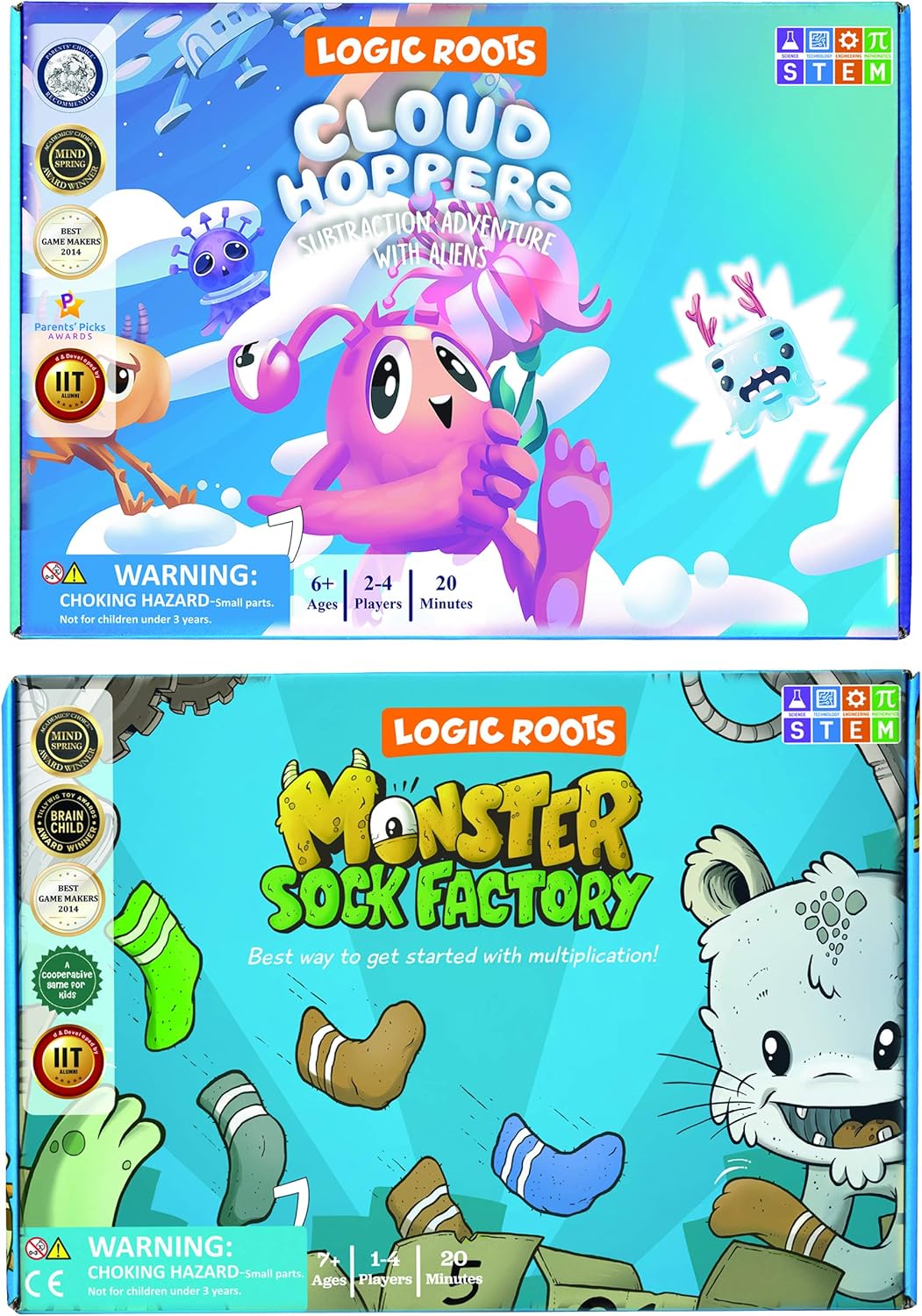 - 2 AWARD WINNING STEM GAMES: Cloud Hoppers is additional and subtraction game. Monster Sock Factory is a game to master multiplication facts. 3 critical math skills in one box