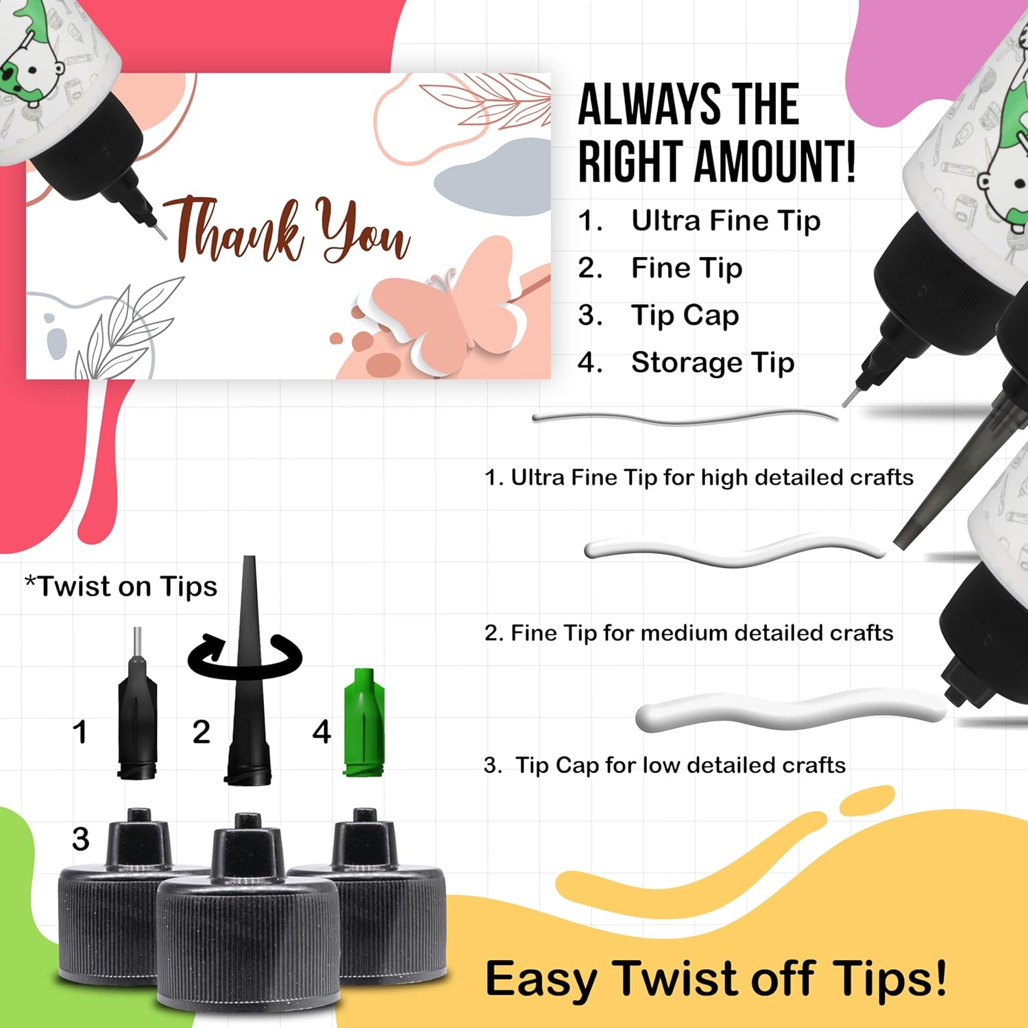 - MULTIPLE-SIZED TIPS: Provides more choices in application! Get better accuracy, freedom, and control with precision tips that twist and snap into place!