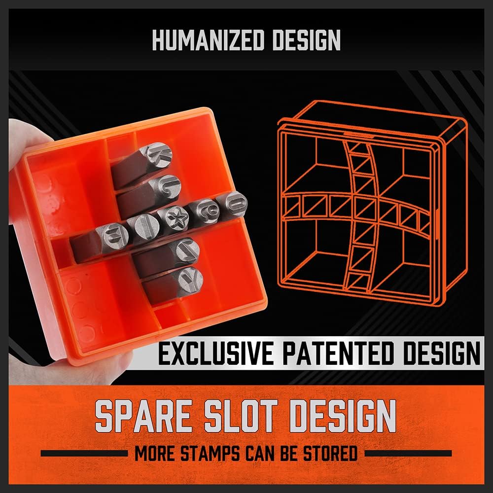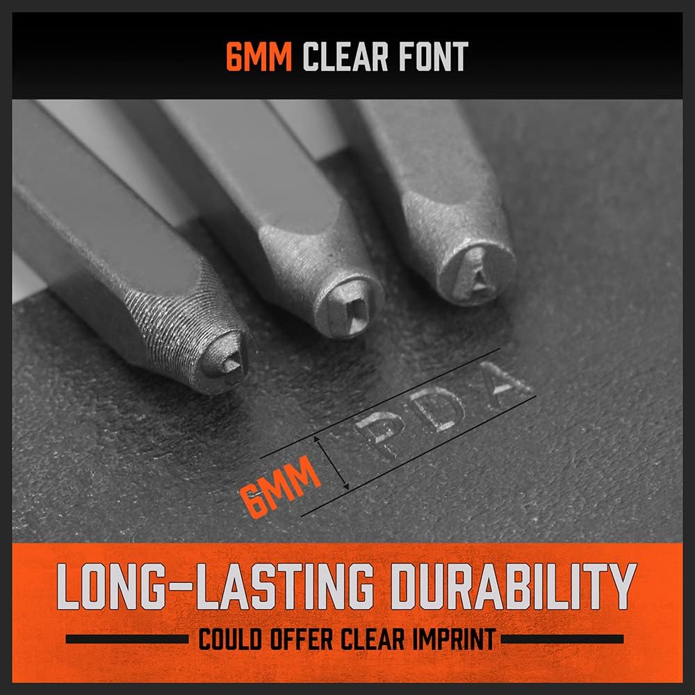 HORUSDY 37-Piece Number and Letter Stamp Set 1/4 (6mm) (A-Z & 0-9 + Stars) Punch Perfect for Imprinting Metal Stamping kit, Plastic, Wood, Leather