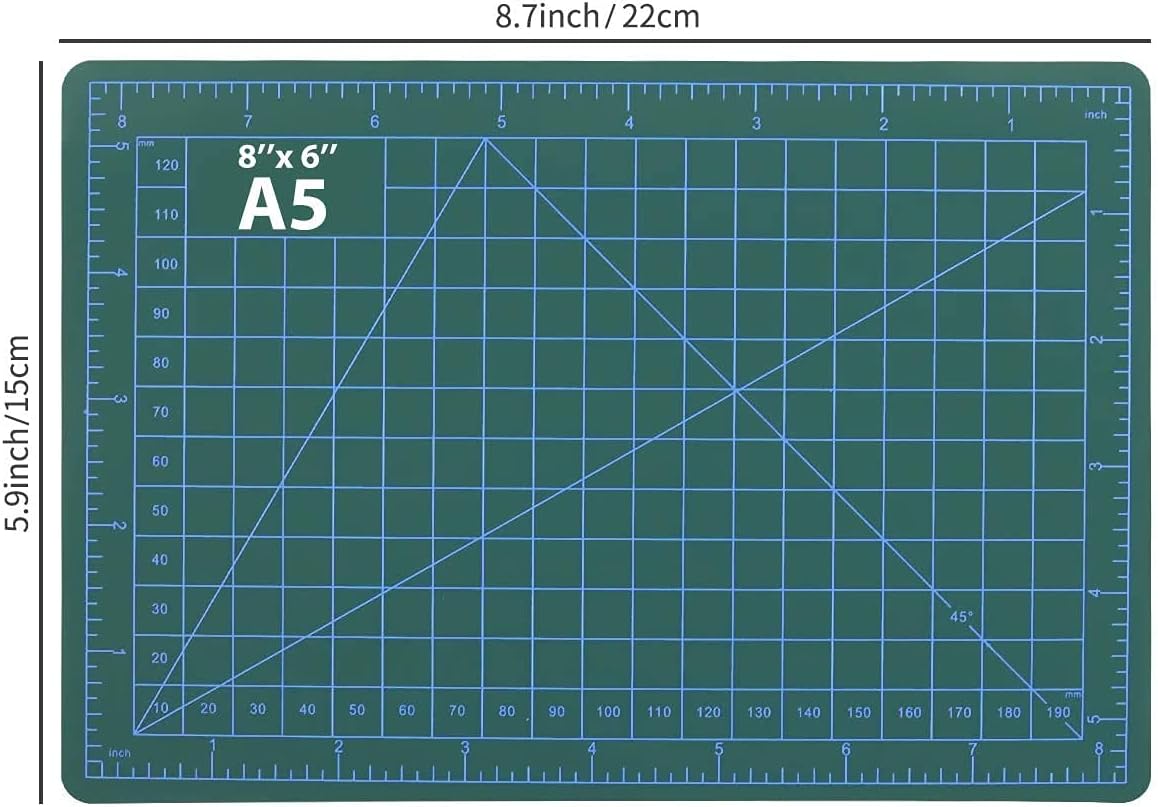 - [A5 Self Healing Cutting Mat]--- The Double Sided Mat have 5-layer design for maximum durability,show inch, metric, and angled guides.
