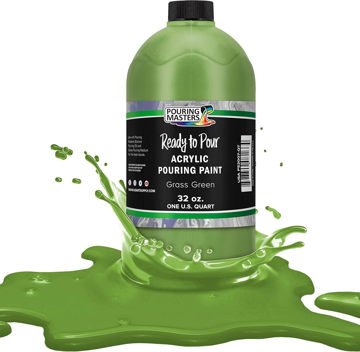 POURING MASTERS Grass Green Acrylic Ready to Pour Pouring Paint - Premium 32-Ounce Pre-Mixed Water-Based - for Canvas, Wood, Paper, Crafts, Tile, Rocks and More