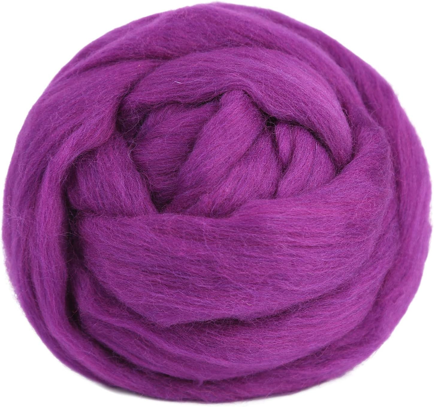 3.53oz Wool Roving Yarn, Fiber Roving Wool Top, Needle Felting Supplies, Pure Wools, Chunky Yarn, Spinning Wools for Needle Felting Wet DIY Hand Spinning (Purple)