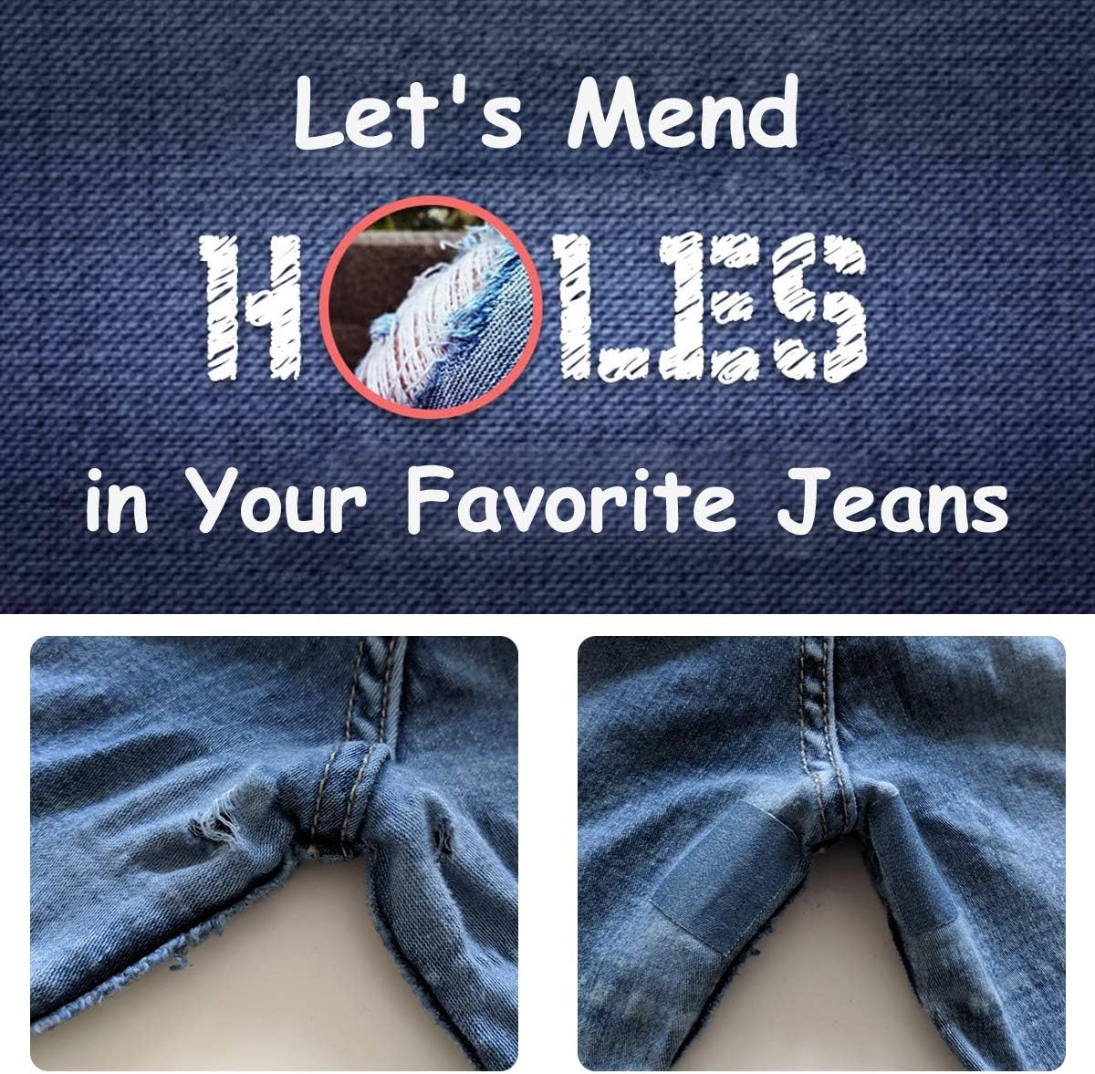 - 【Easy to Apply】Save your favorite jeans! Using scissors to cut the iron on patches for clothes into the size or shape you need to repair. Place the patches for jeans on the garment with iron for heavy pressure or heat press for middle presure. Only few minutes will take to reinforce the jeans inside and out