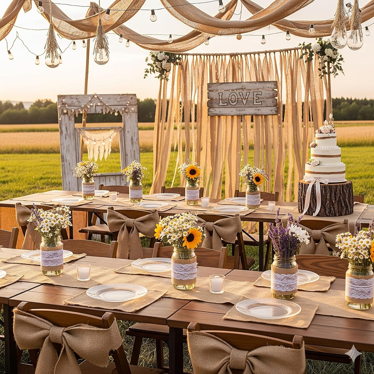 - High Quality - Our burlap ribbon made with natural fibers and nice density weave plaid, neat and symmetrically stitched ribbon and jute twine rope are friendly and durable. Strong but not rough, good touch feeling and give a rustic and elegant feel.