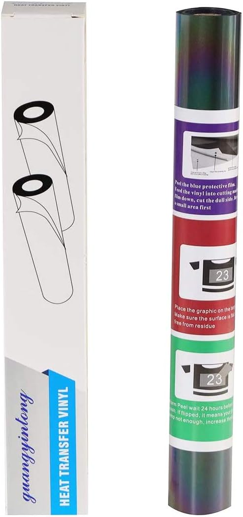 Guangyintong Reflective Rainbow Heat Transfer Vinyl Roll, 12" x 8ft, 1 Piece, Rainbow HTV Vinyl for All Cutter Machines, Easy to Cut & Weed, DIY Design