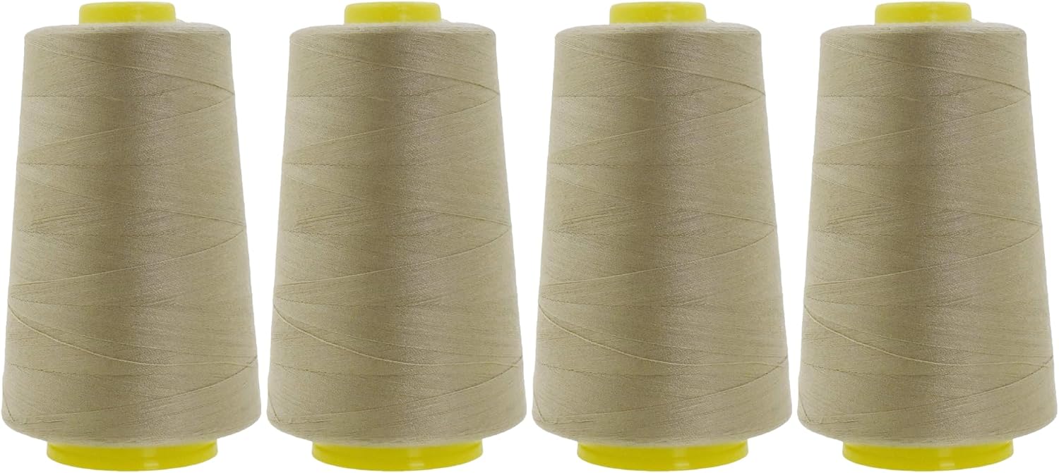 Mandala Crafts 4 Pack of Serger Threads Cones Spools - 40S/2 24000 Yards Polyester Beige Threads for Sergers Machine and Overlock Quilting Sewing Machine