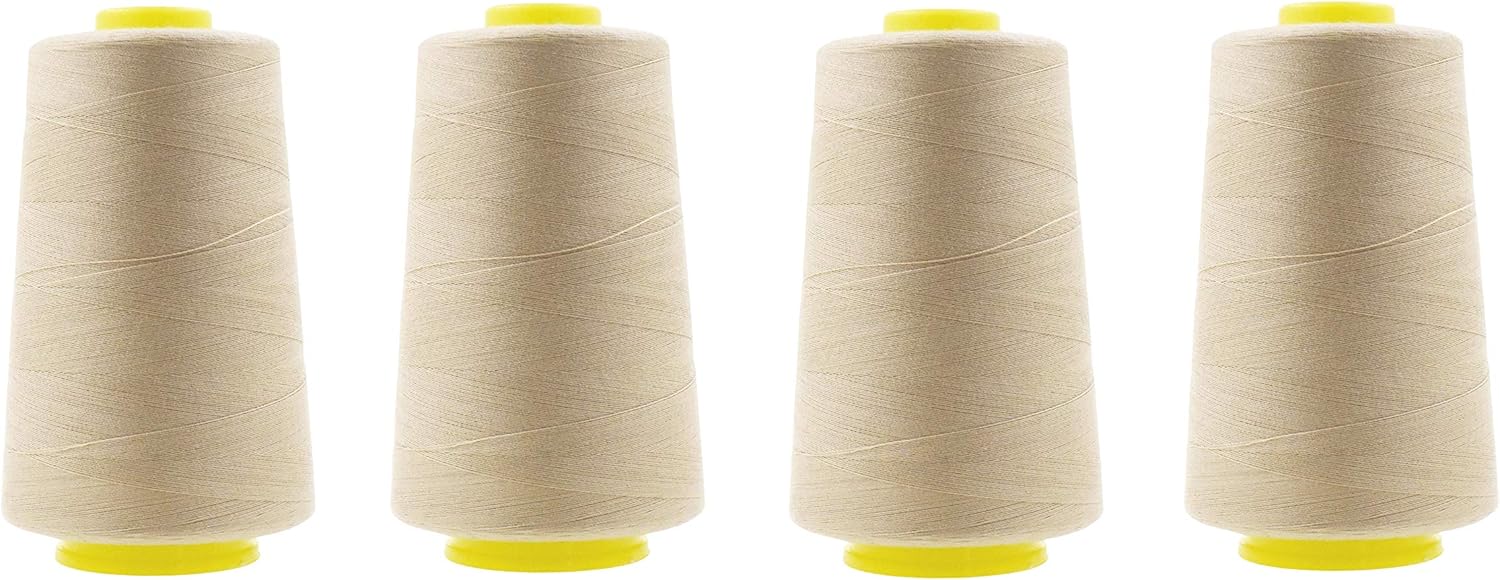 Mandala Crafts 4 Pack of Serger Threads Cones Spools - 40S/2 24000 Yards Polyester Cream Threads for Sergers Machine and Overlock Quilting Sewing Machine