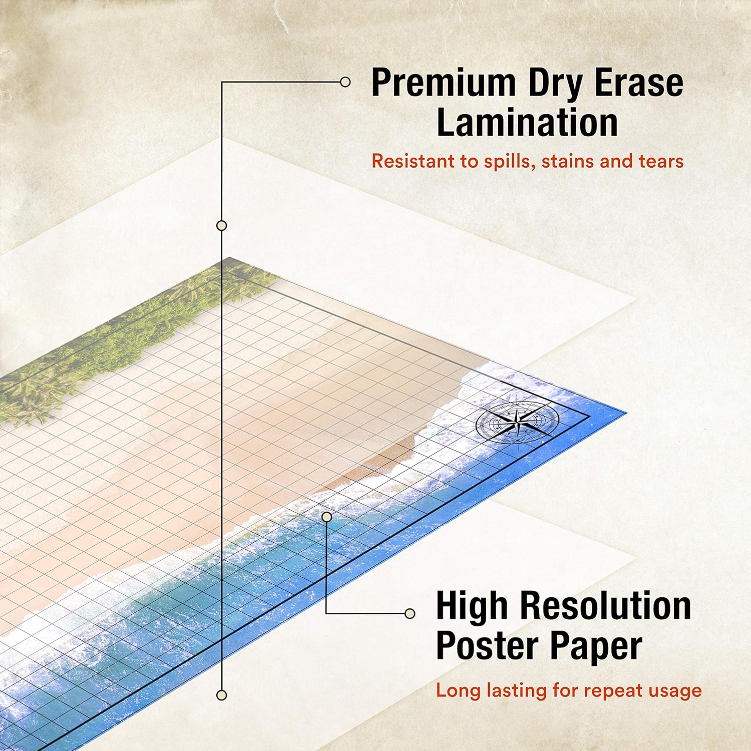 - 💥 Waterproof & Transportable: We made each table top grid mat fully water proof and easy to wipe clean. It’s also a dry eraser that won’t ghost or smear. Everything comes in a branded “Battle Tube” so you can transport your D&D accessories in a compact, easy way.