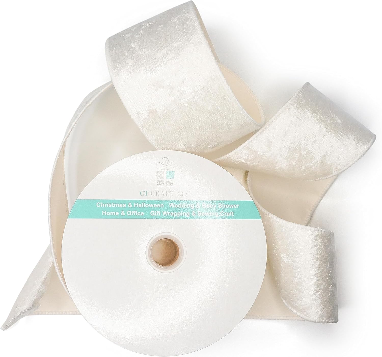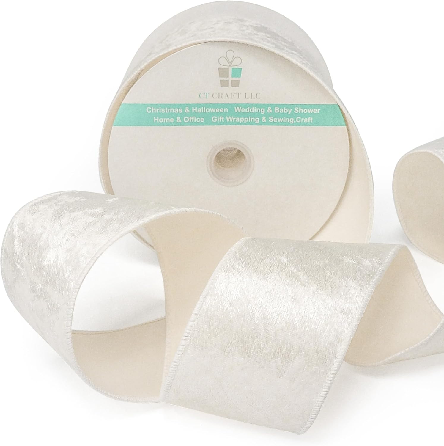 - EASY TO USE - The 10-yard long Ivory Velvet Ribbon 2.5" is enough for all the decorating and accenting your DIY Crafts. The Ivory Velvet Ribbon 2.5" is easy to use and won’t tangle. It can be tied or glued on gift packages and DIY craft projects such as car and chair bow, wreath, flower bouquet.