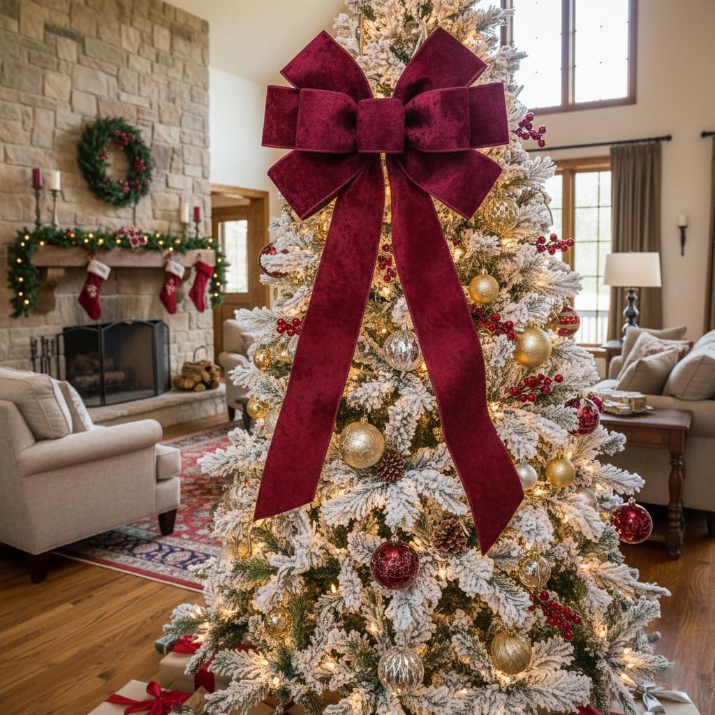 Wine (Burgundy) Velvet Ribbon 2.5 Inch x 10 Yards for Christmas Tree Topper Home Decoration Wreath Gift Wrapping DIY Craft