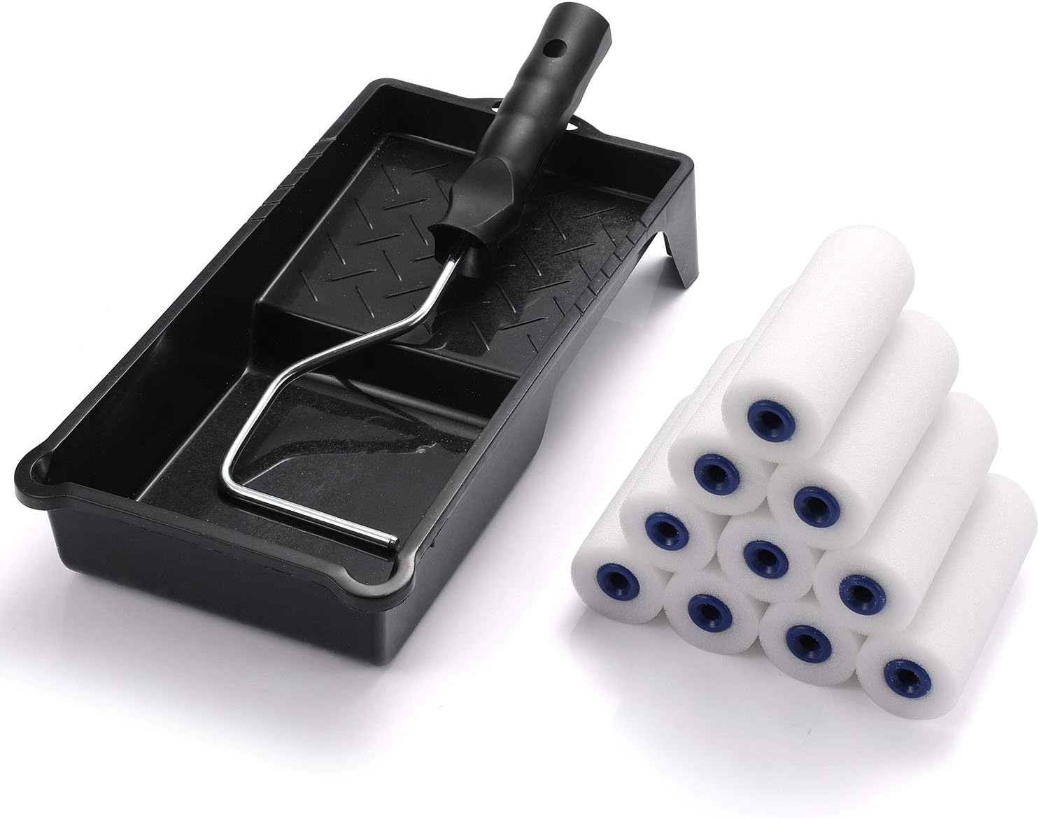 Foam Paint Roller, Roller Frame with 4-Inch Mini Paint Roller Cover Refills with Foam-Covered Ends, High-Density Foam Paint Tray Set for Room Home Repair Mini Paint Kits(12 Piece)