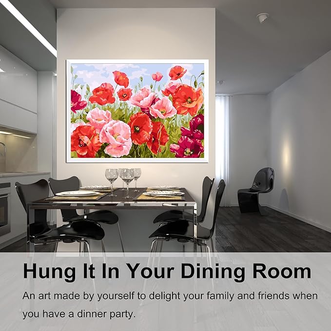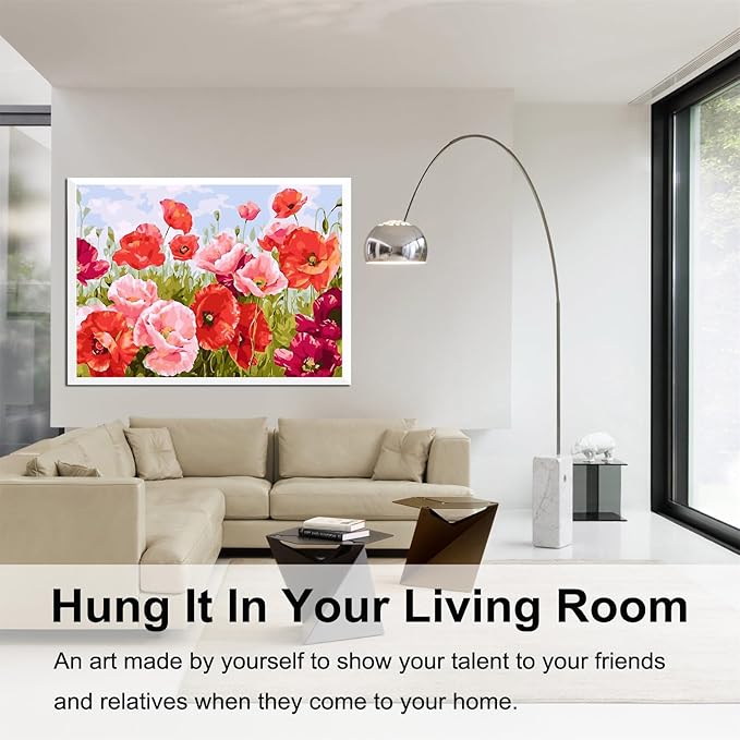 BAISITE Paint by Numbers Kit for Adults Beginners,20" Wx16 L Canvas for Painting Kits for Adults in Colorful Box Poppy Flowers-BSC001