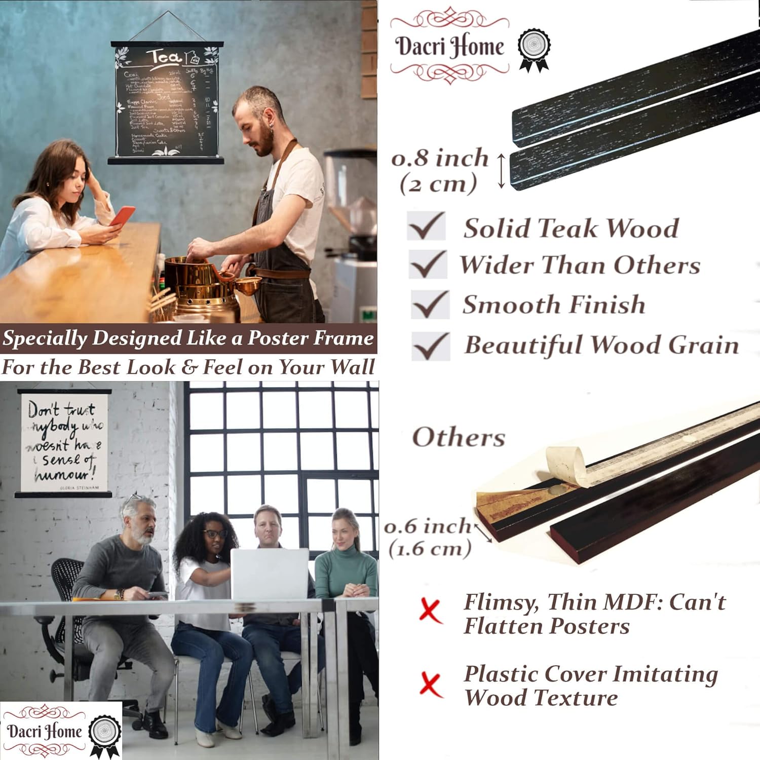 - ✔️ RELIABILITY: Built with powerful N52 industrial magnets and solid Pacific teak wood, this frame holds up to 0.8 lb without slipping. Its own weight can help keep scroll posters straight.