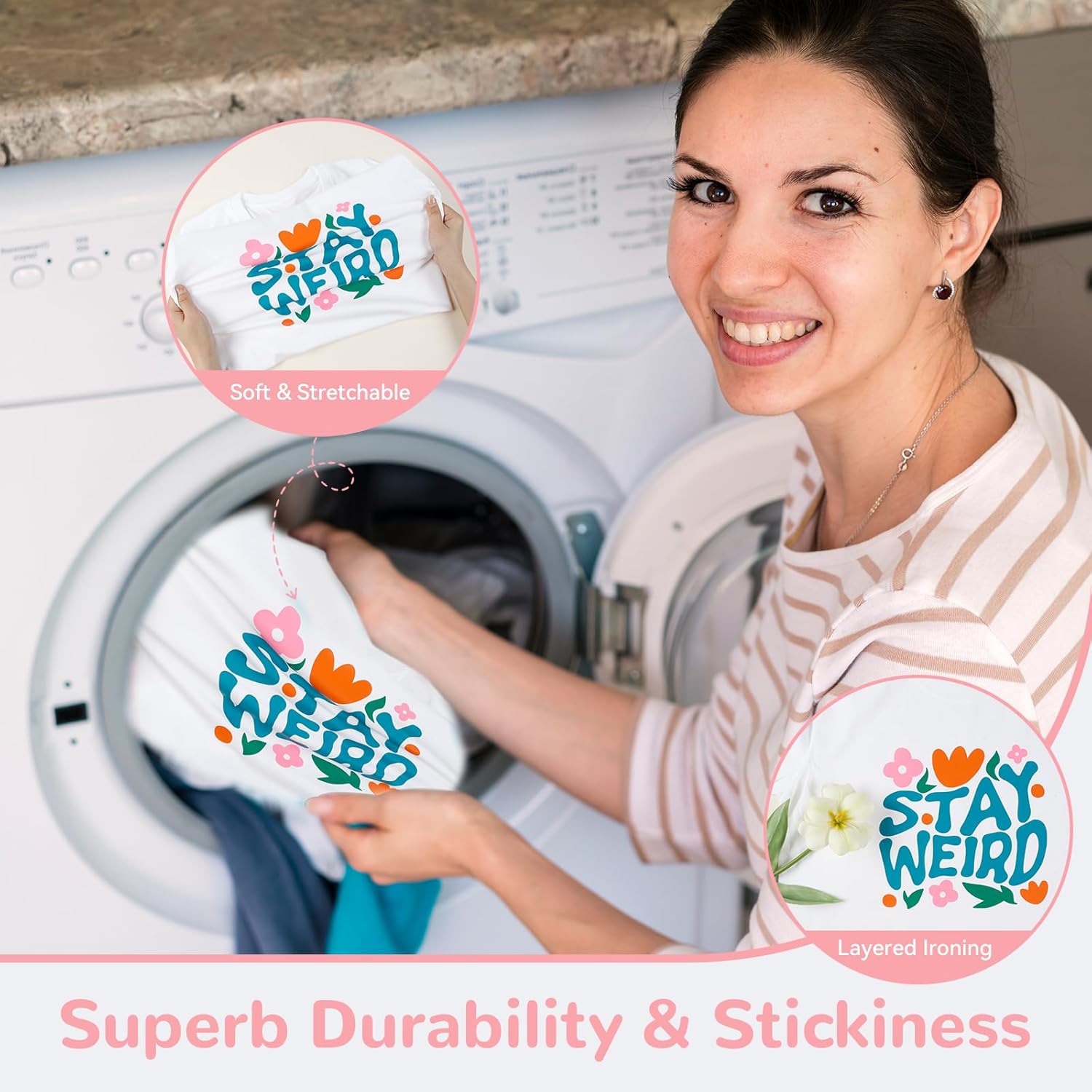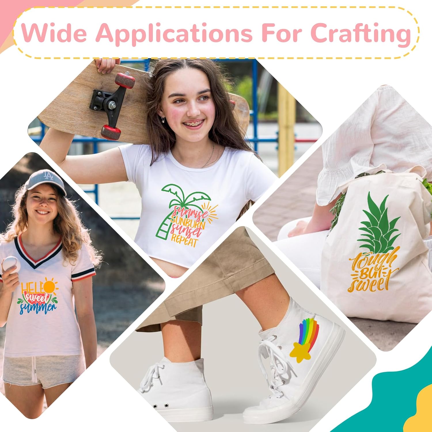 - 【WIDELY USE & PERSONALIZE GIFT】Your t-shirt, bag, sportswear, aprons, hat and pillow, which used our iron on vinyl bundle, make you stand out from the crowd. Good choice for birthday and Christmas and anniversaries gift to your family or lover. It is never too early to get started on creating some lovely and personalized gifts for your friends and family that they are going to love and cherish.