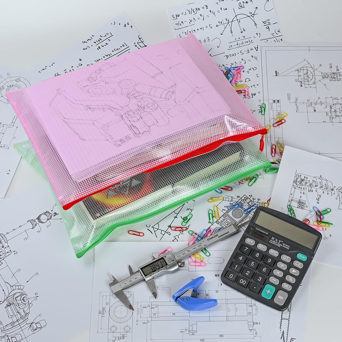 AUSTARK 20Pcs Board Games Storage Bags, PVC Mesh Zipper Pouches, Zippered File Bags, Plastic Waterproof Storage Bags for Office School Home Travel Cosmetic (B4 Size 15 x 11 Inches, Multicolored)