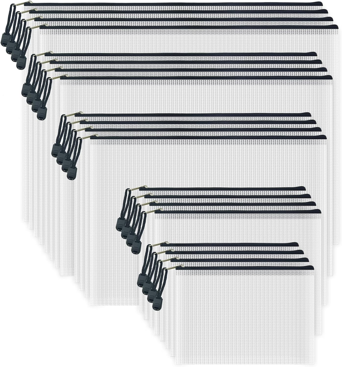 AUSTARK 20 Pcs Zipper File Bags, Plastic Mesh Pouch, Board Game Storage Bag, Waterproof Bags for Office School (Multi-Size, White and Black)