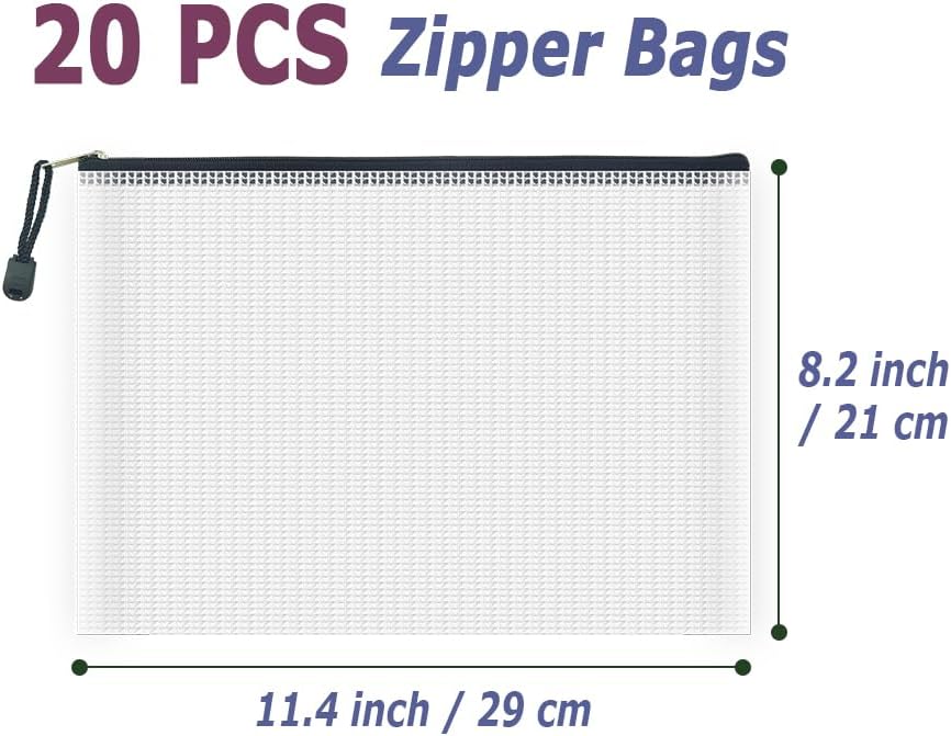 - 20 Pcs zipper pouches B5 Size 11.4 x 8.2 inch. Widely used in office supplies, school classroom, home daily life, hospital and travel. These storage bags for organizing could meet your needs in all ways to save space
